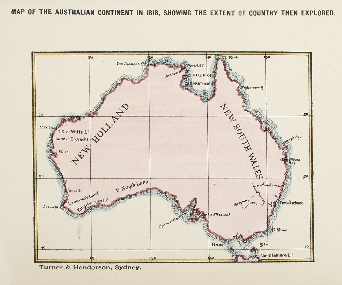 Small c.19th engraved map of Australia showing the extent of exploration up to 1818.