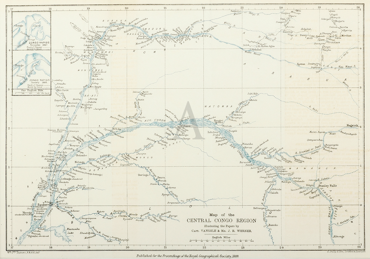 Rare map of the Congo with excellent inland information and insets of Zongo Rapids.