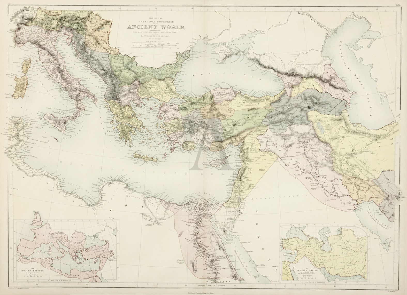 Inset of the Roman Empire lower left.