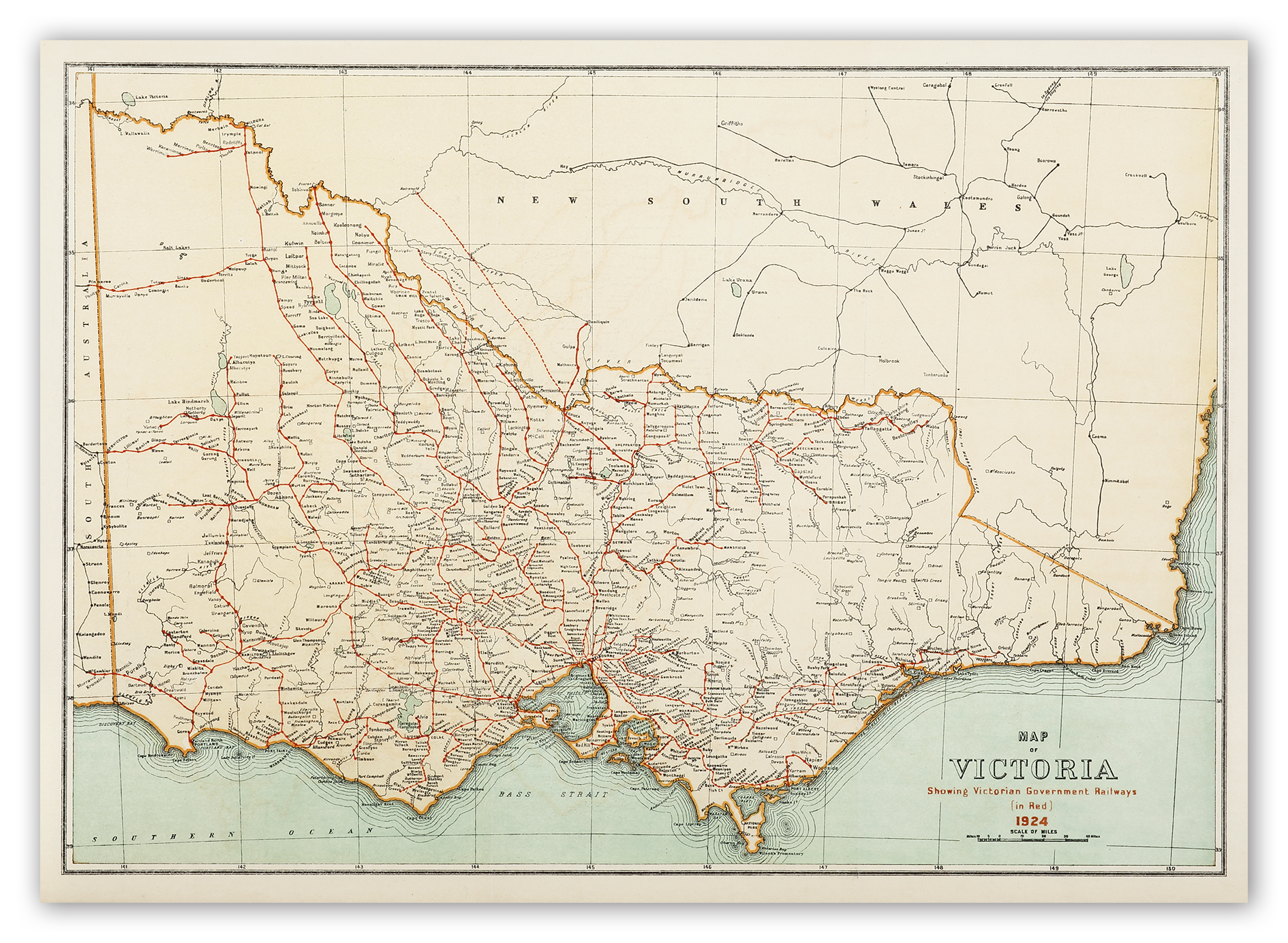 Scarce map of the Victorian railway system as at 1924.