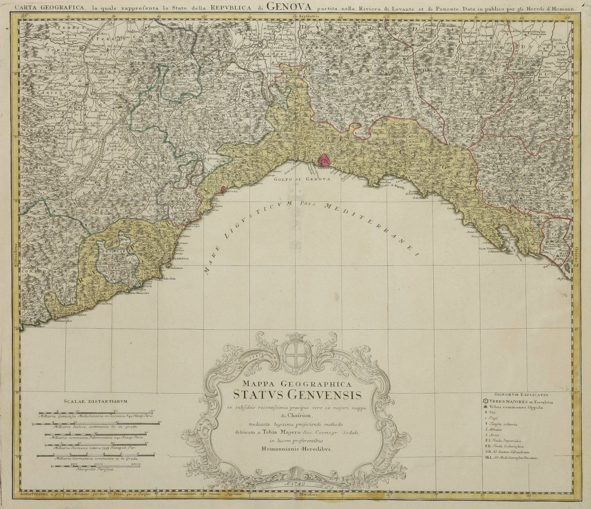 Map centres around Genoa the famous old trading port to Monaco and to Mostrone.