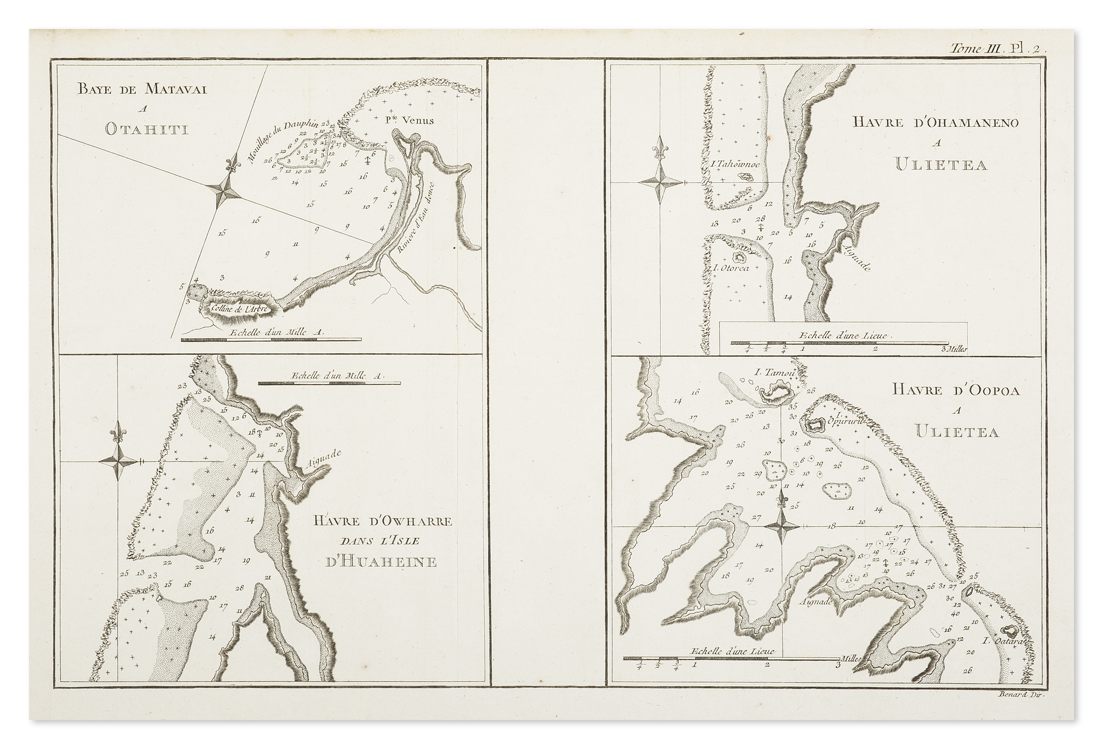Normal 0 false false false EN-AU ZH-CN X-NONE French edition of the engraved titled; [Matavia Bay in Otaheite. Ohamaneno Harbour in Ulietea. Owharre Harbour in Huaheine. Oopoa Harbour in Ulietea.] Four maps of harbours in the Society Islands on the … Read Full Description