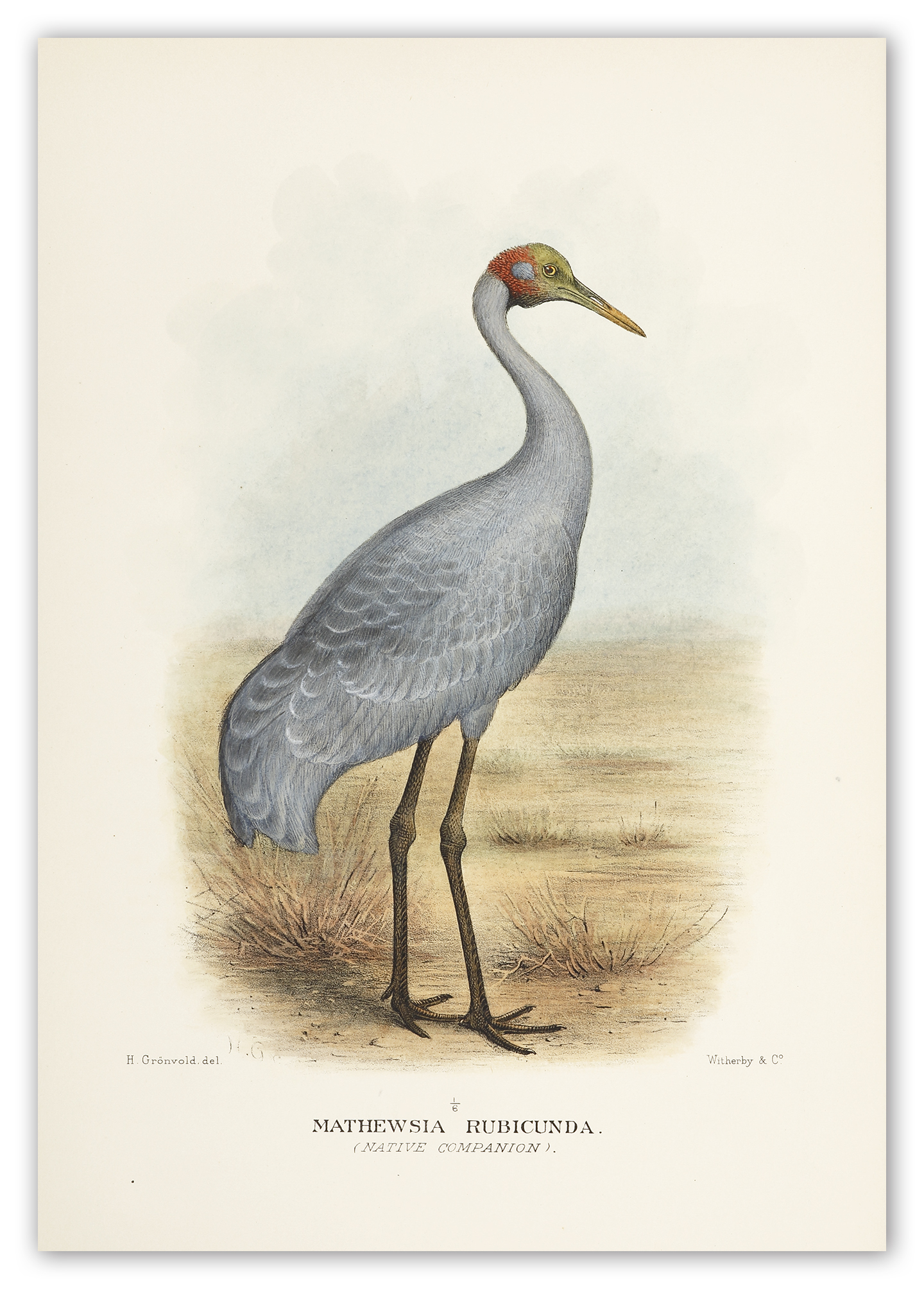 Gronvold was a Danish born artist who, after studying, entered the military as a draughtsman. On leaving Denmark he obtained work at the British History Museum in London. This image is from the last great bird series, The Birds of Australia by G. Matthews and is rarer than John Gould’s work on Australian birds, with only 225 sets done. It was the last series produced to use hand colouring rather than colour printed lithography for the illustrations.