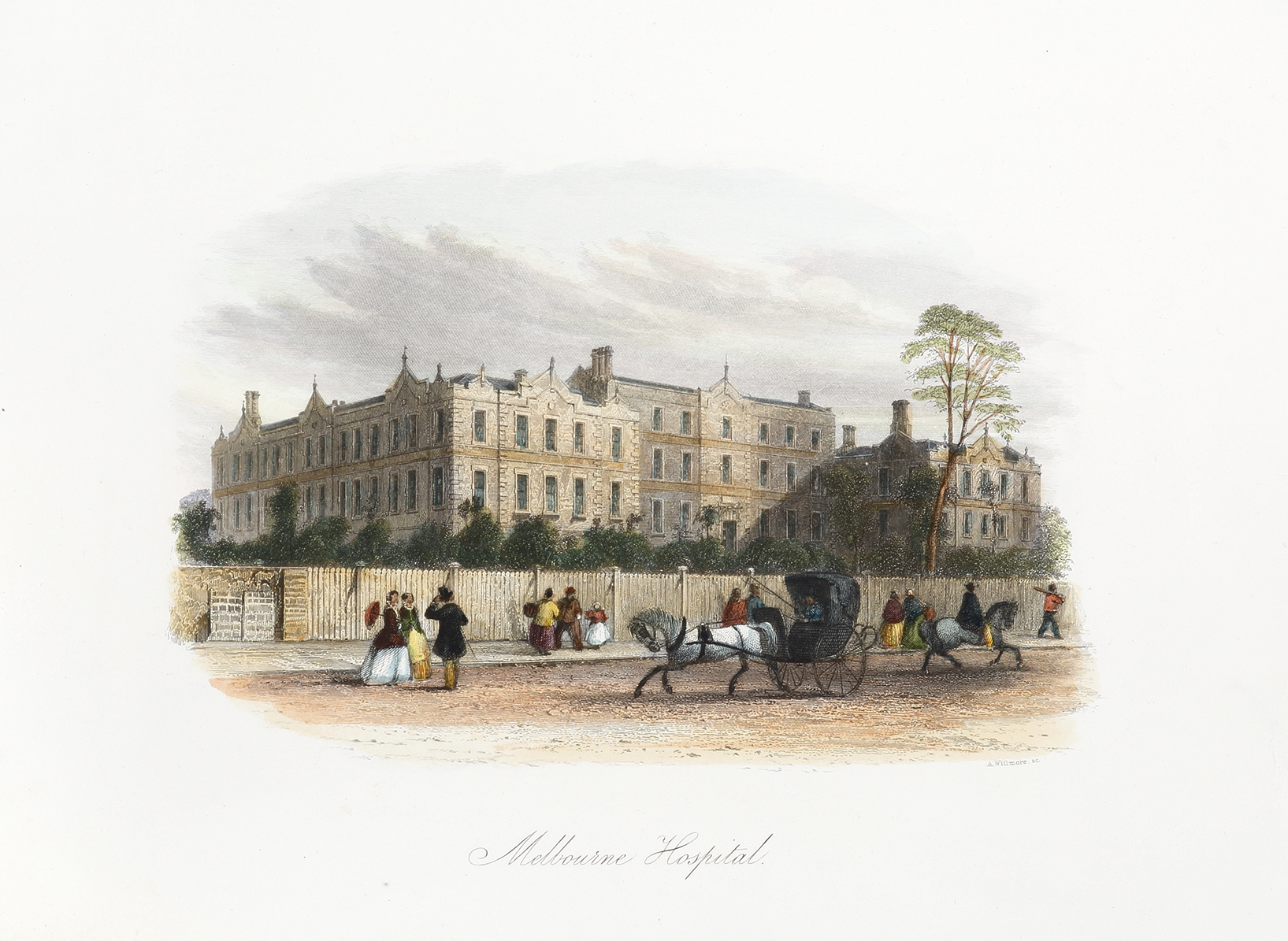 On 1 March 1841, a group of influential citizens, headed by Charles La Trobe, Superintendent of the Port Phillip District, who later became the hospital’s President in 1847 and 1850-51, called for a public meeting to discuss the urgent need for an enlarged public hospital. At this meeting a provisional committee was formed, with the aim to raise £800 for a building fund. A year later only £300 had been collected and in 1845, after two previous unsuccessful applications, the Committee was able to claim a Government subsidy of £1000 for the building of the hospital.