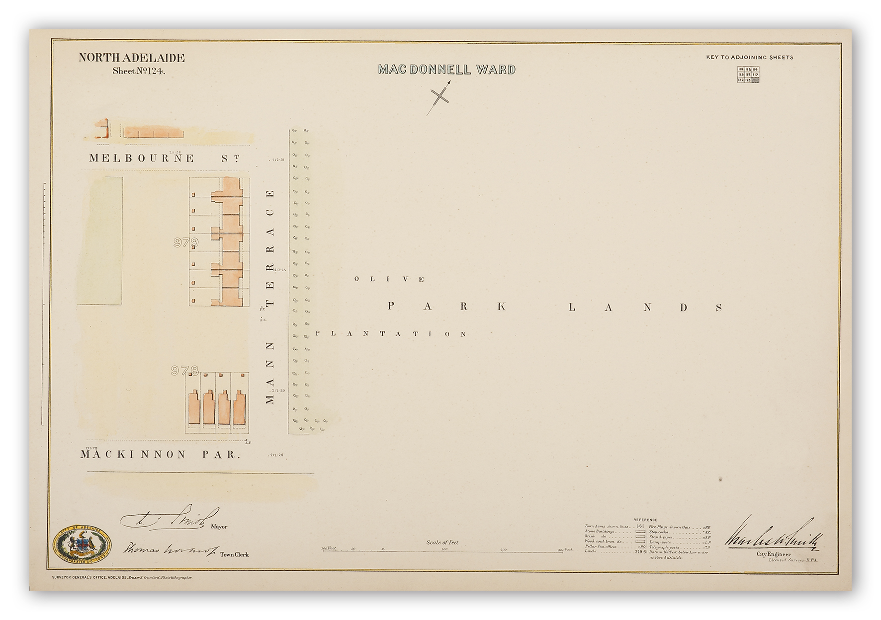 Very detailed plan extending from Mann Terrace and Melbourne Street to Mackinnon Parade North Adelaide by Charles William Smith.