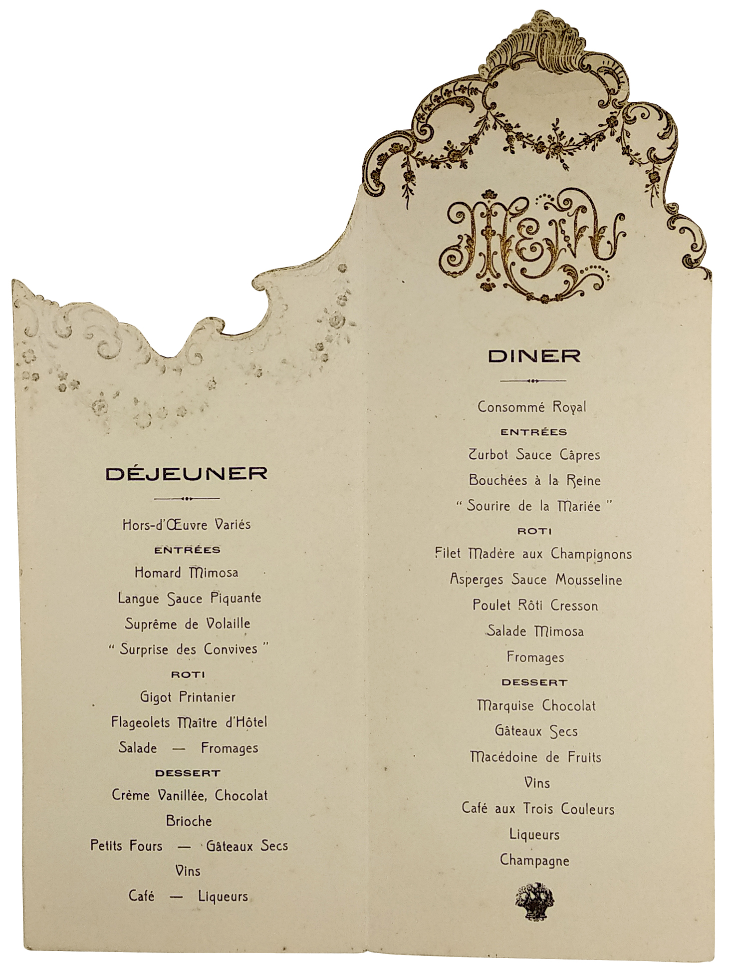 French menu for a communion celebration.