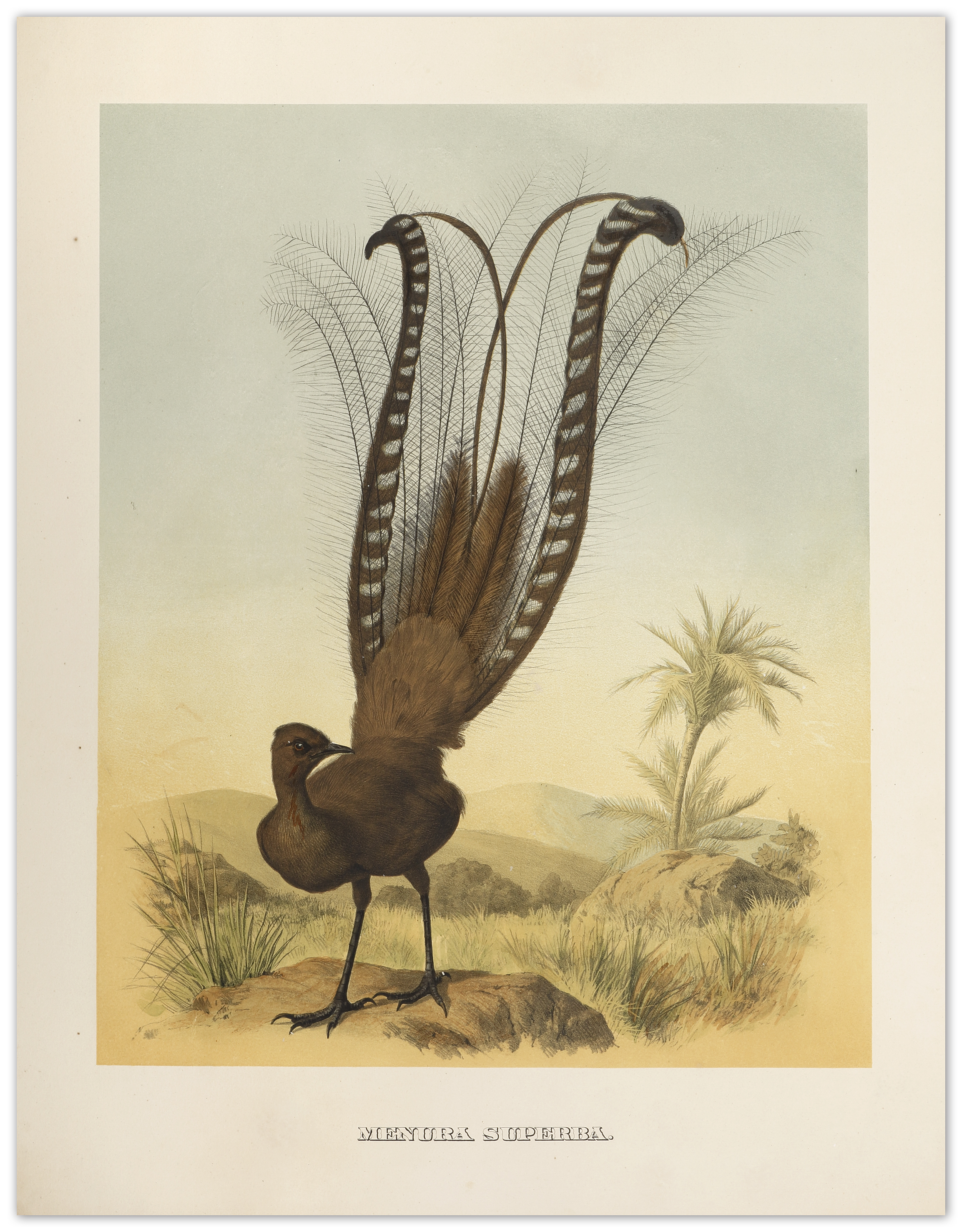 Rare, large scale c.19th colour lithograph of Australia’s iconic Lyre Bird, by Joseph Smit (1836-1929).
