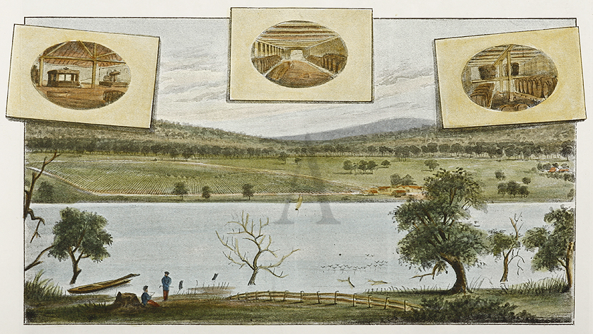Colonial engraving of Caldwell vineyard near Mildura.