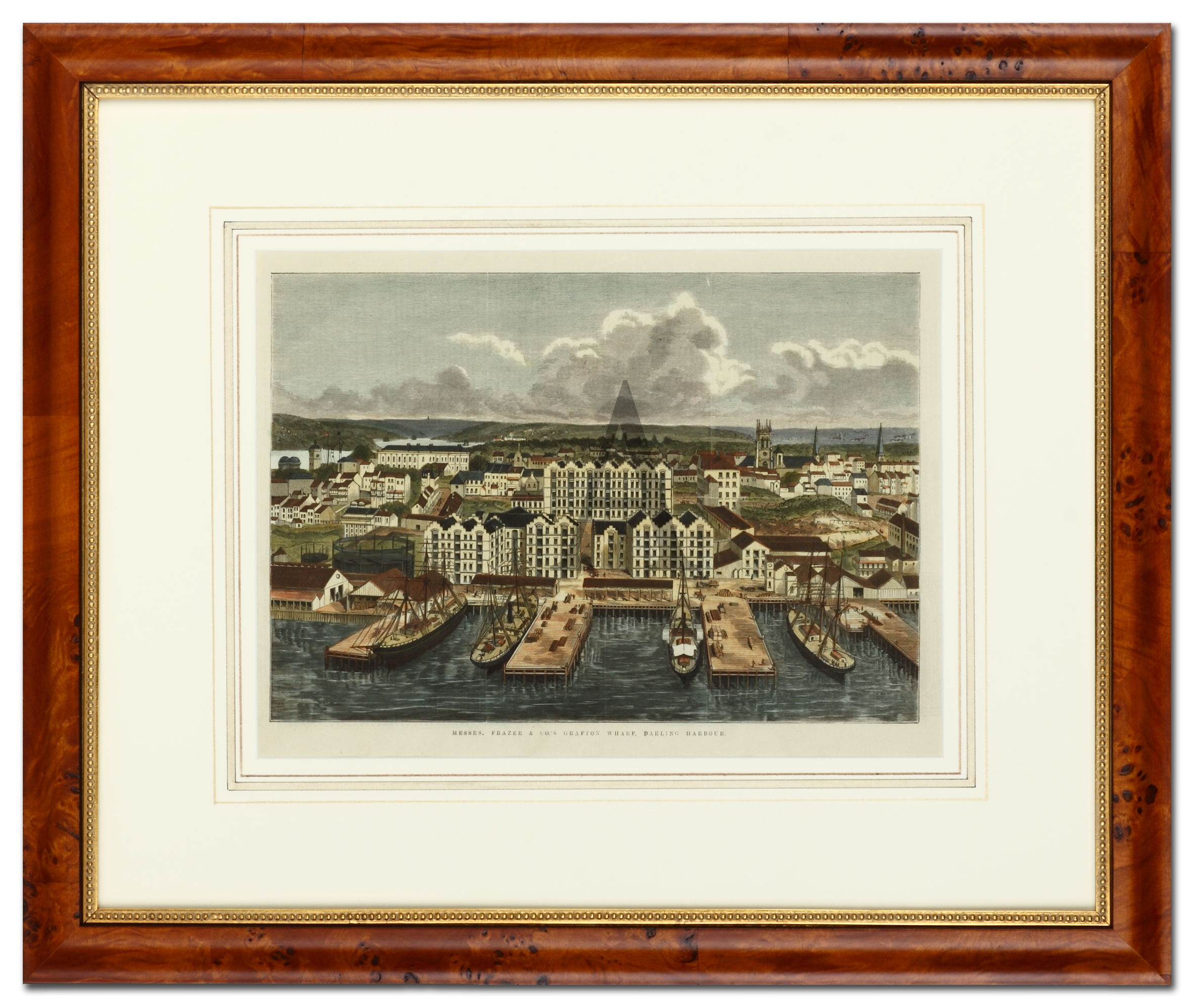 Detailed rare colonial engraved view looking east over Darling Harbour with the Observatory to the left. From the original edition of the Illustrated Sydney News.