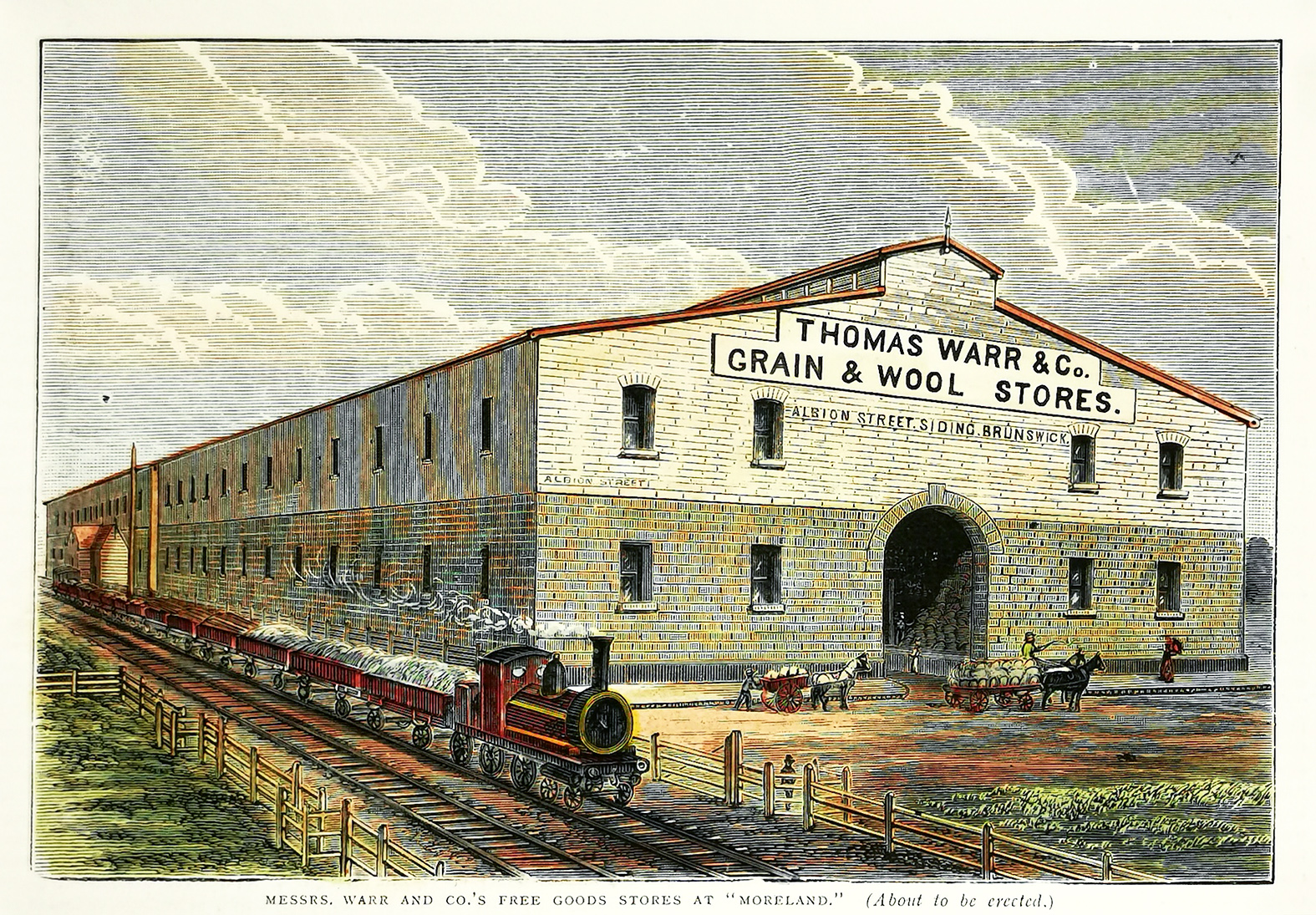 Fine colonial engraving of Warr and Co.’s Free Goods Stores at “Moreland”.
