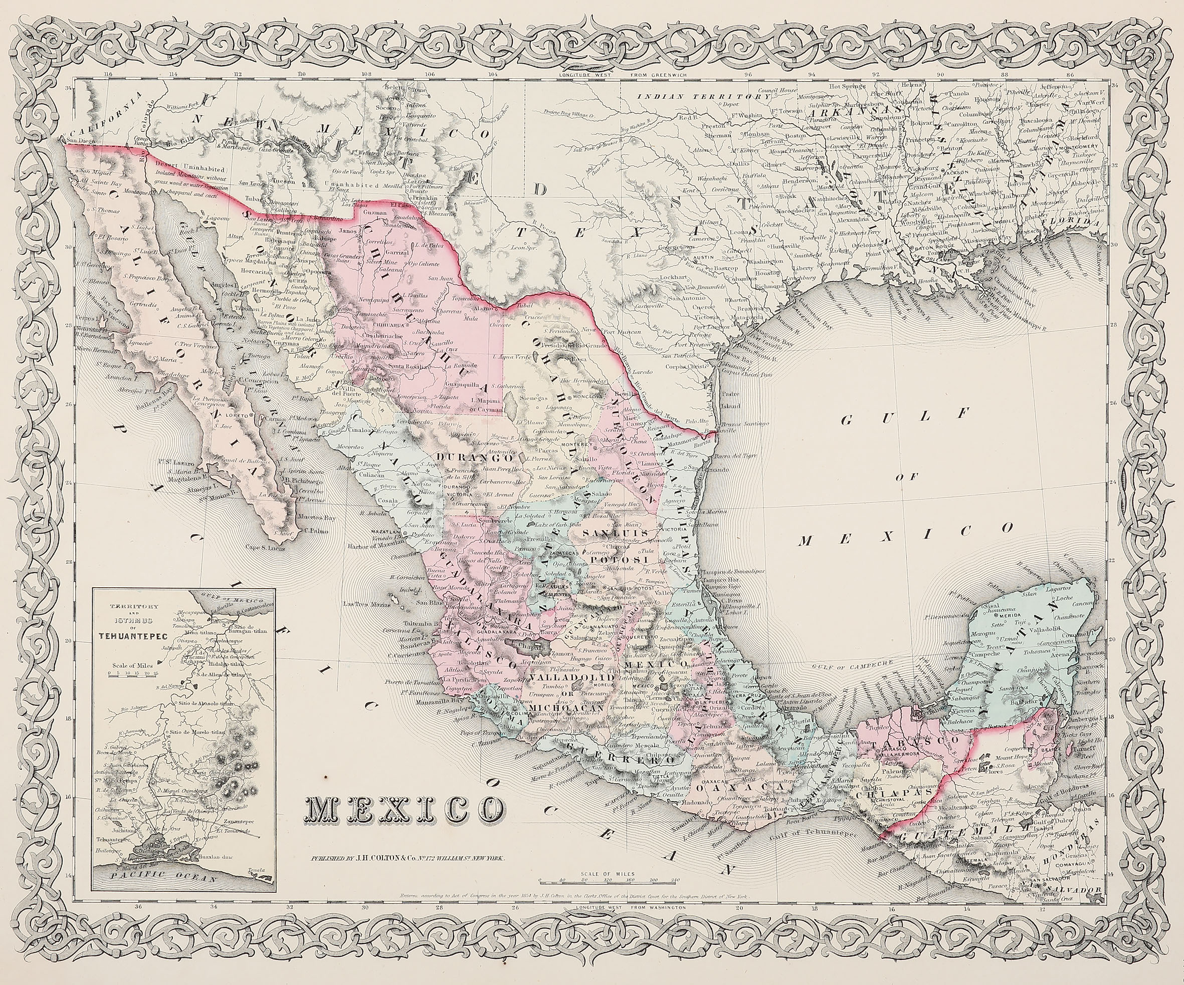 Scare, c.19th hand coloured engraved map of Mexico and California from the first edition of Colton’s atlas.