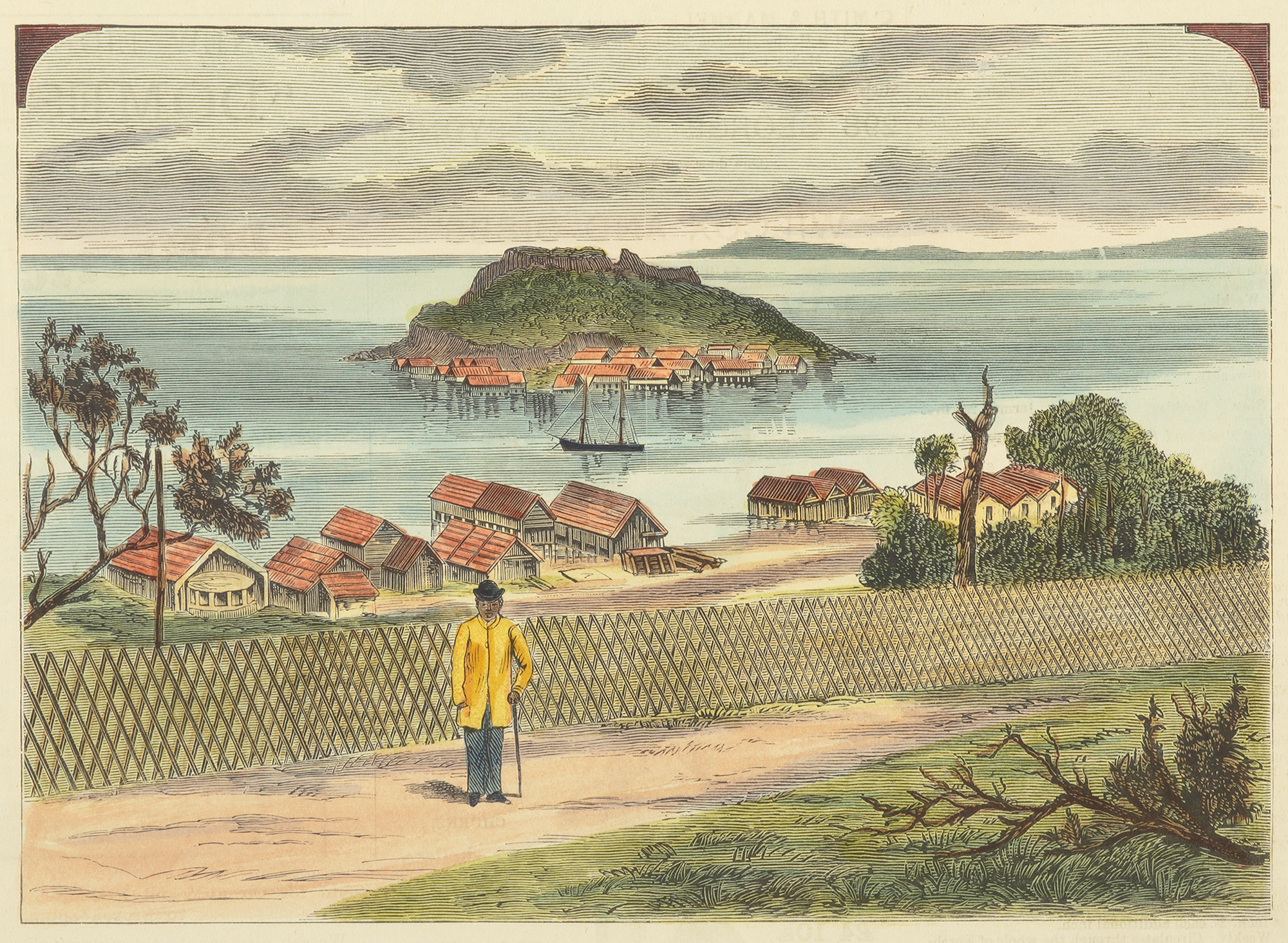 Very rare colonial engraved view of Port Moresby, from the original edition of the Illustrated Sydney News.