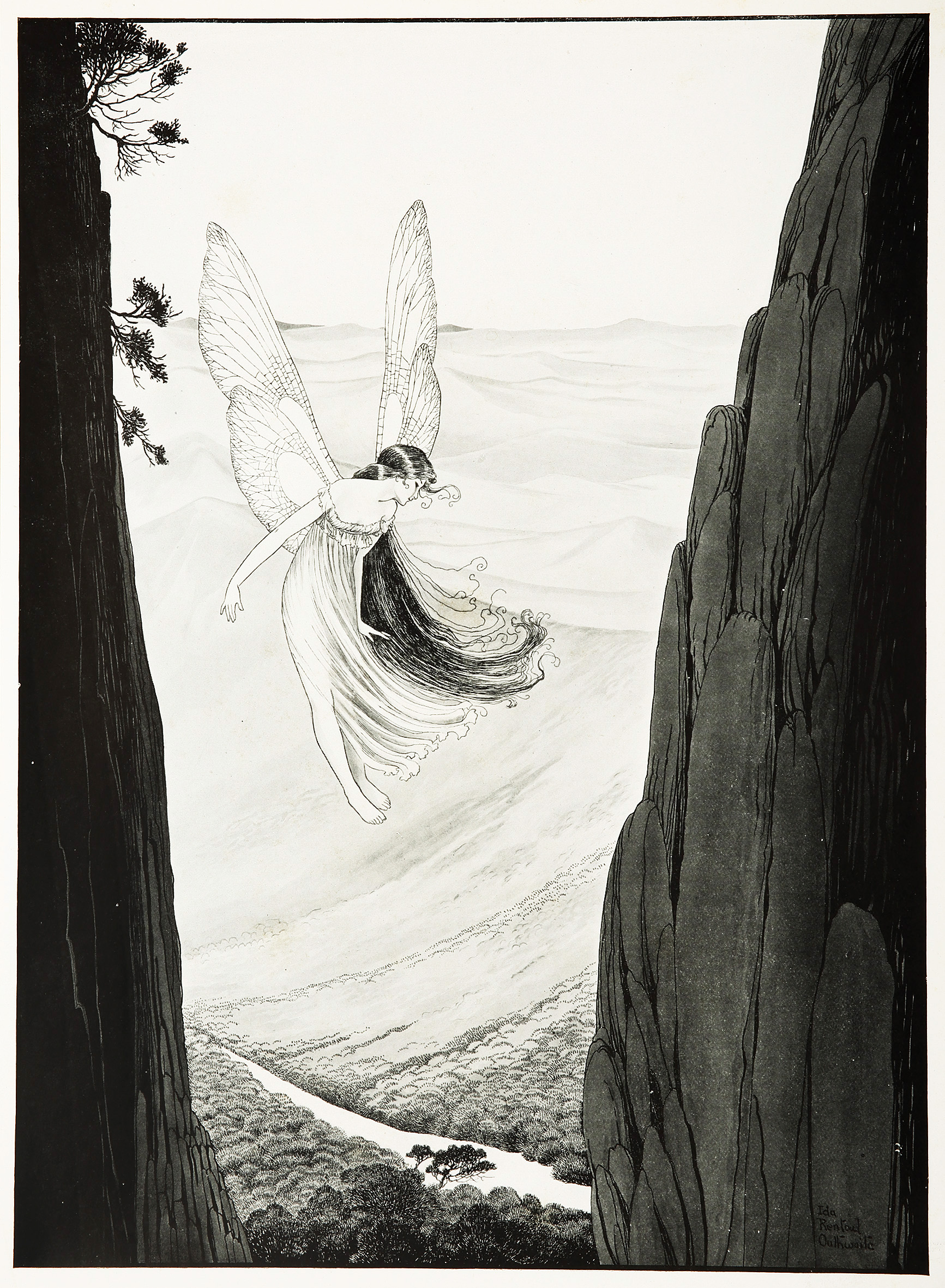 Rare illustration by Ida Rentoul Outhwaite from her first deluxe series, Elves and Fairies, produced in Australia by Thomas Lothian. Her illustrations are her enduring legacy of her love of the Australian bush.
