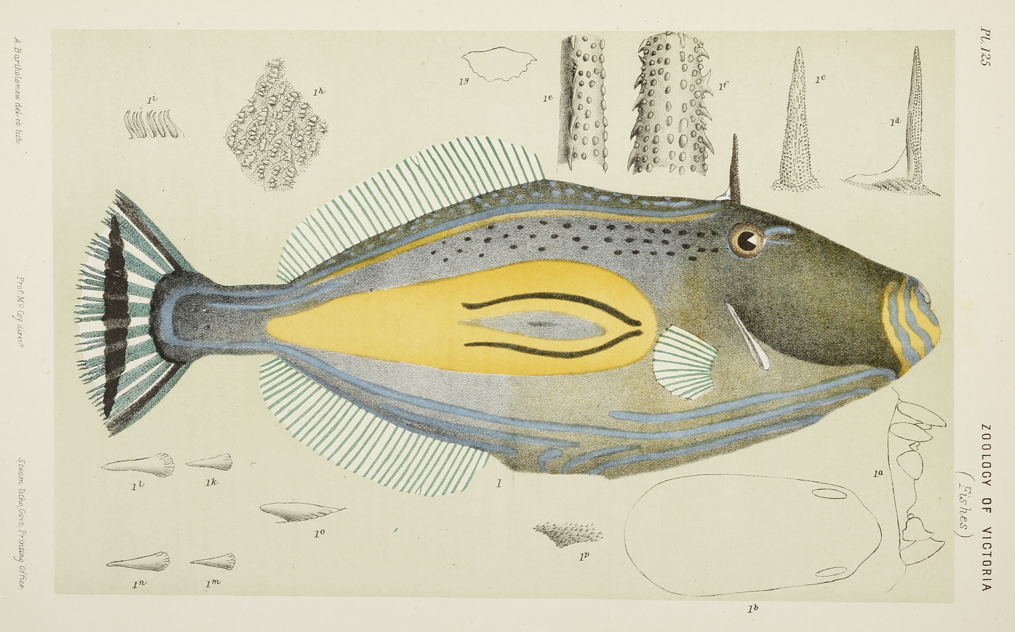Rare Australian lithograph of the Horseshoe leatherjacket from Frederick McCoy’s, Prodromus of the Zoology of Victoria.