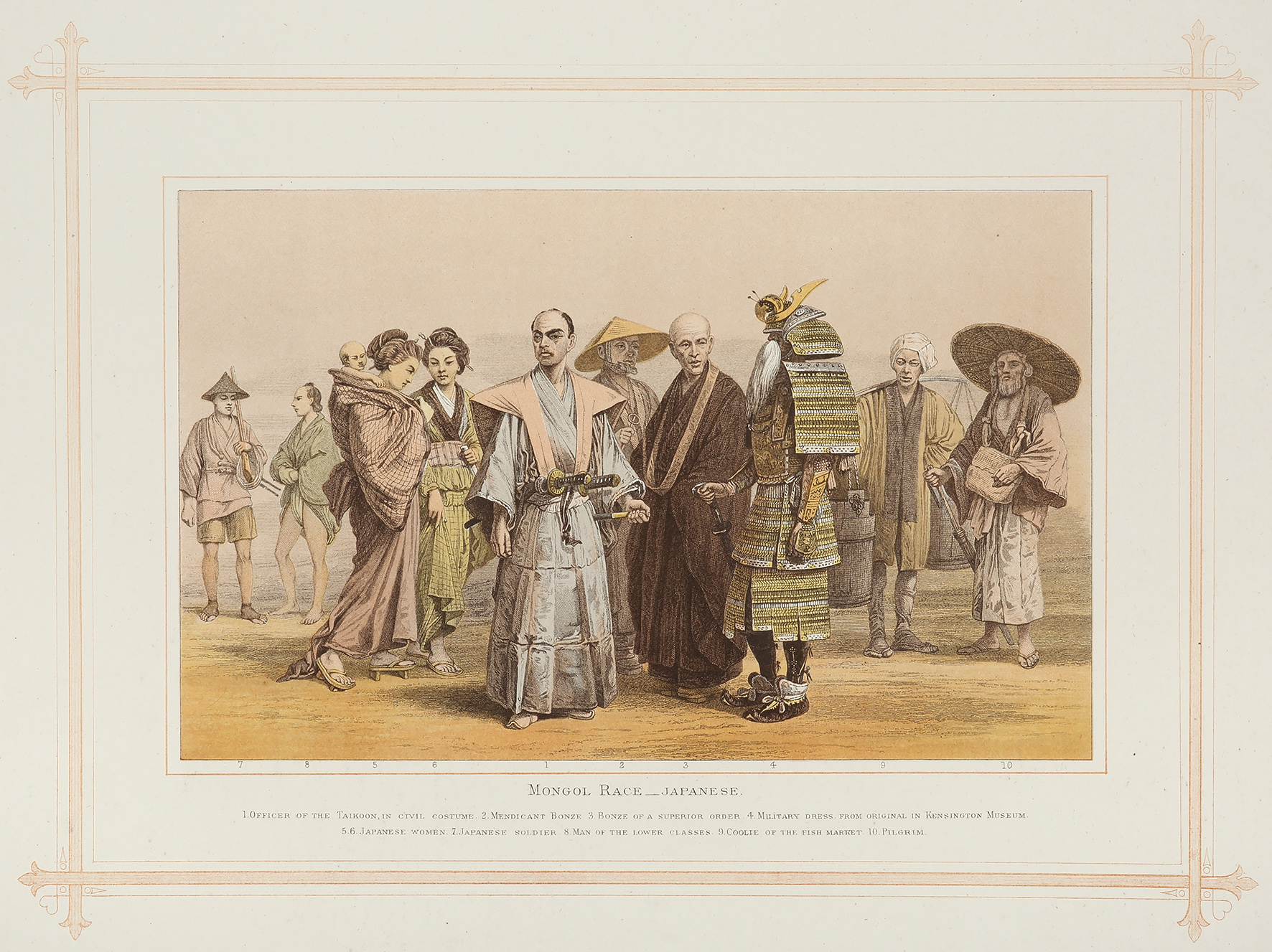 C.19th colour printed engraving of Japanese in traditional dress. From W.G. Blackie’s, The Comprehensive Atlas & Geography of the World… Collections: National Library Australia: Bib ID: 1818869 State Library New South Wales: Call Numbers:TF03289 David Rumsey Collection: List No: 1589.004