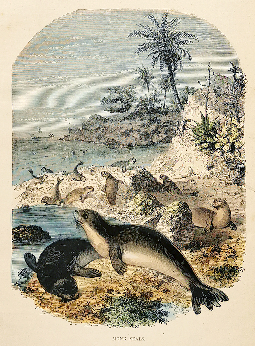 Engraving of Monk Seals from the Cassell’s Popular Natural History.