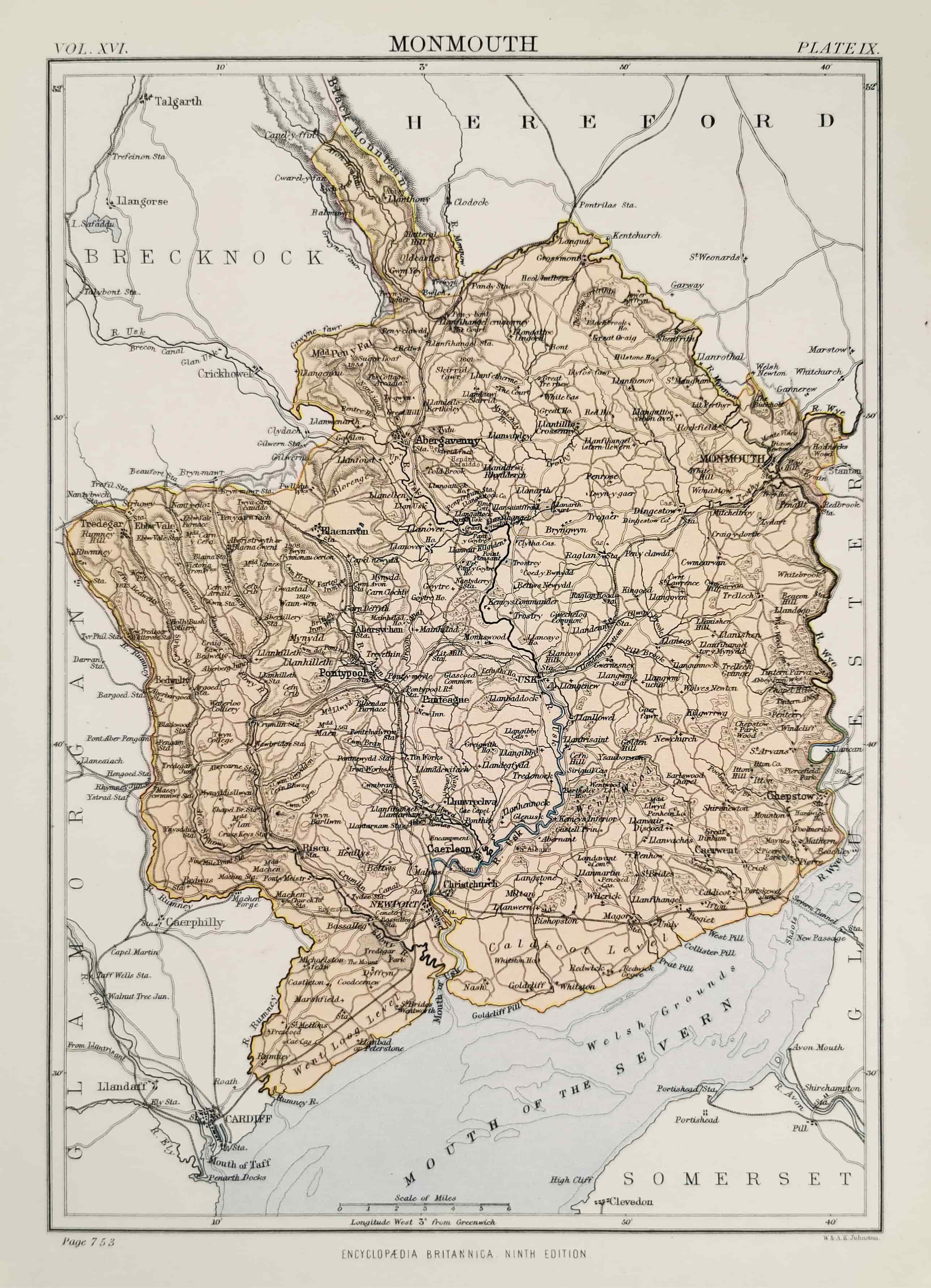 Map of Monmouth, in England.