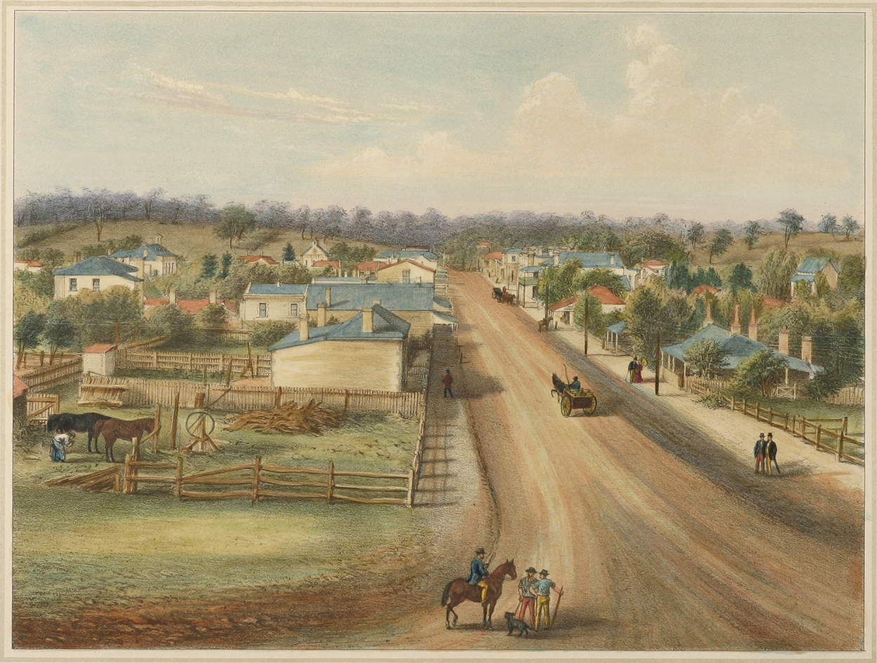 Rare colonial lithographed view of Mount Barker. From, Louis Henn & Co., Twenty-one Miscellaneous Views of Adelaide. References: Carroll, A. Graven Images in the Promised Land / A History of Printmaking in South Australia 1836-1981. Adelaide 1981 42. pp. 22-23. Gill, … Read Full Description
