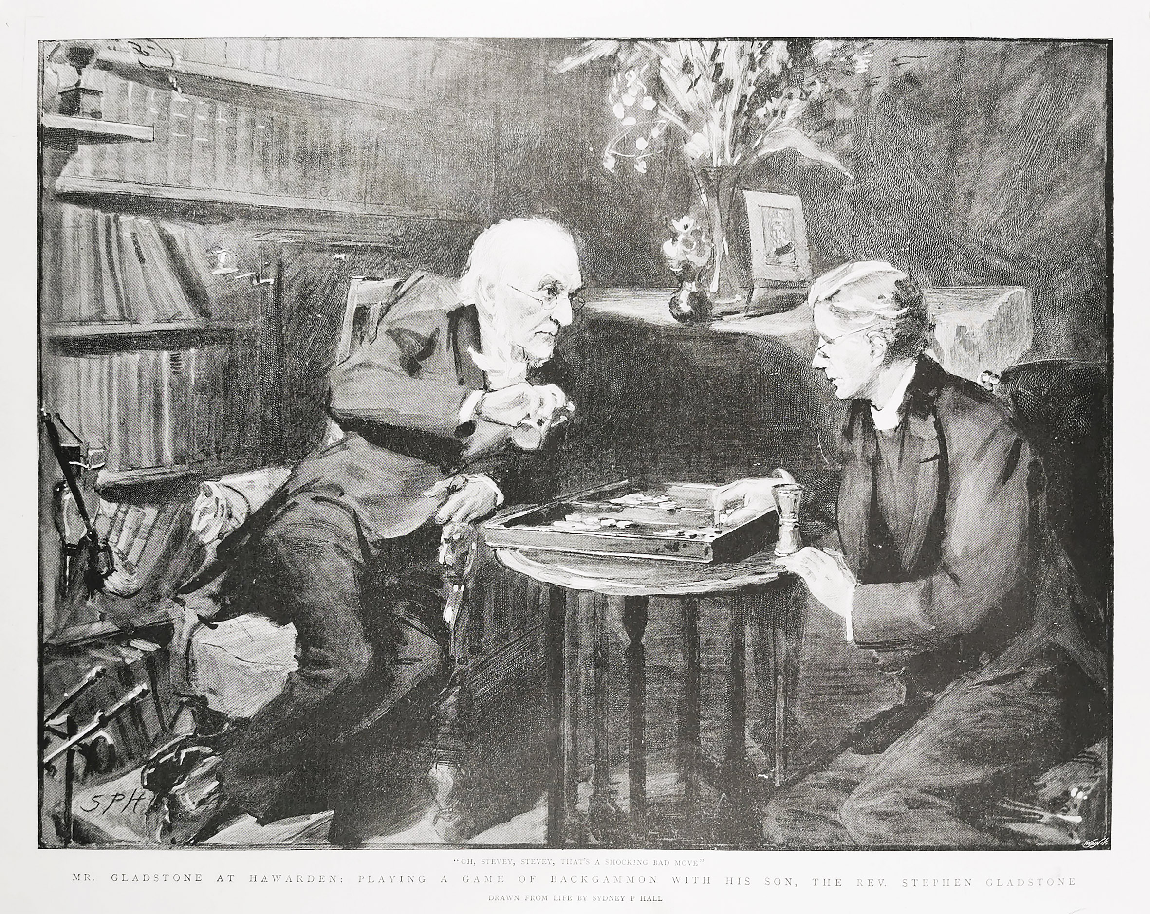 Engraving of a game of backgammon, from the original edition of The Graphic.