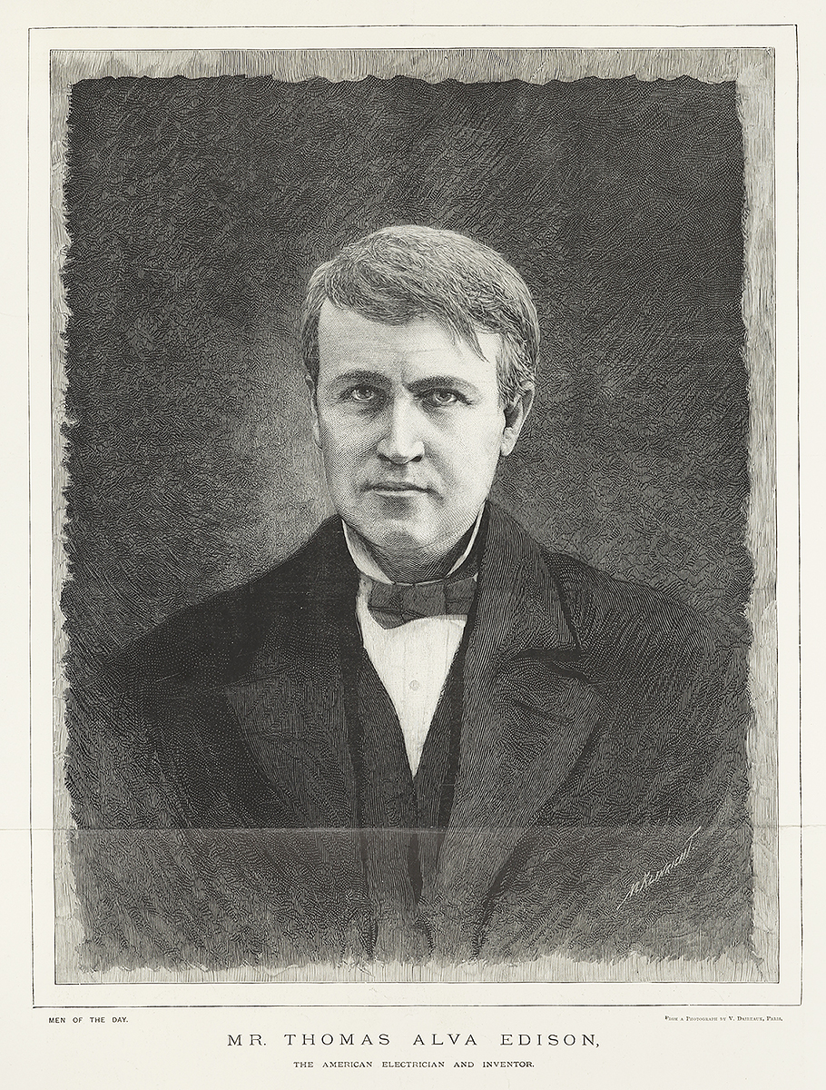 Large engraved portrait of the American inventor, Thomas Edison taken from a photograph by V.Daireaux.