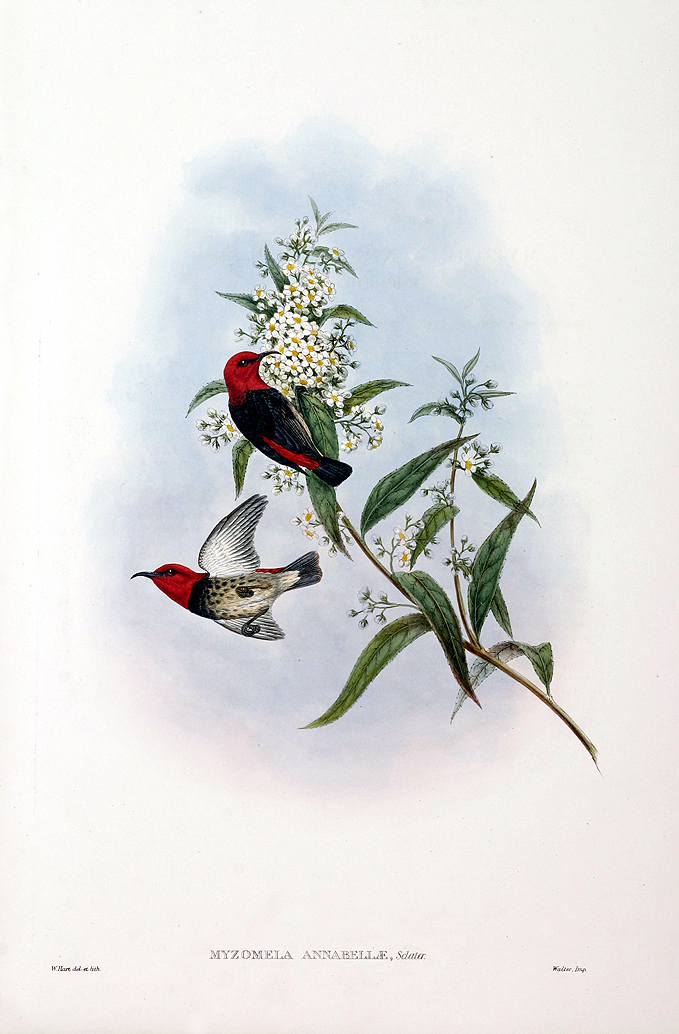 Mrs Forbes’s Honey-sucker - Myzomela annabellae - Antique Print from 1875