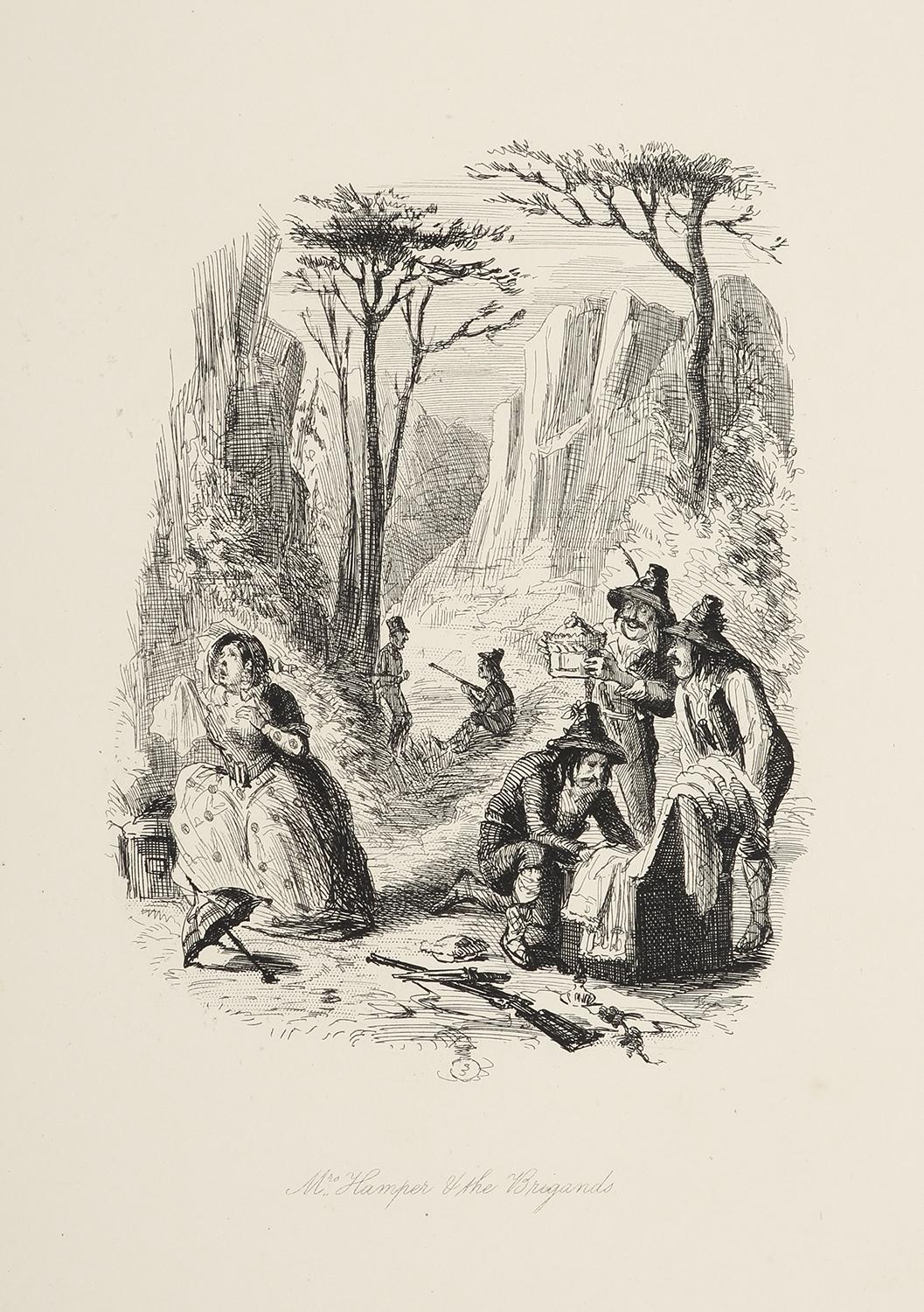 Mrs. Hamper & the Brigands. - Antique Print from 1848