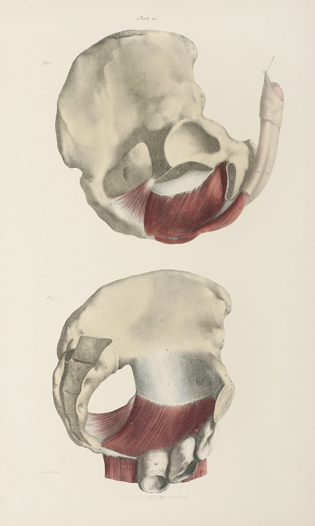 From: Quain & Wilson, A Series of Anatomical Plates, comprising: The Muscles of the Human Body. – The Vessels of the Human Body. – The Nerves of the Human Body. – The Viscera of the Human Body. – The Bones and Ligaments of the Human Body. London: Taylor and Walton, 1836- 1842.