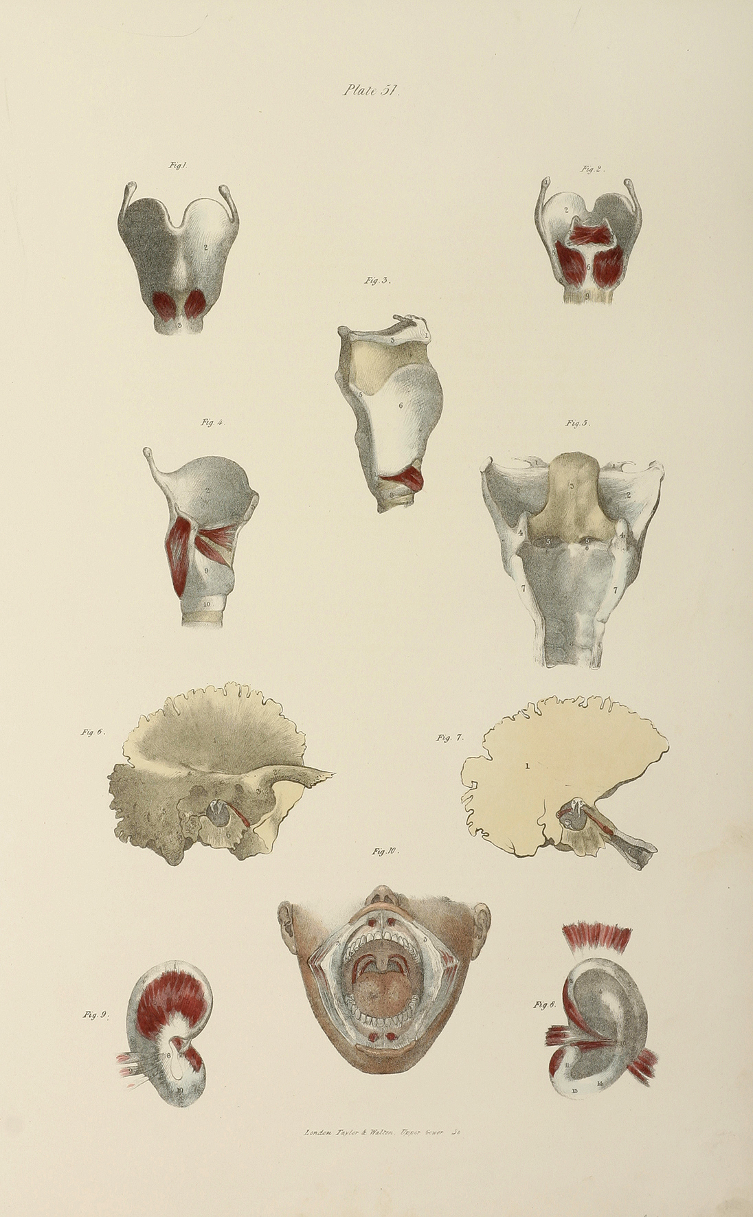 Muscles which move the cartilages on the larynx. - Antique Print from 1838