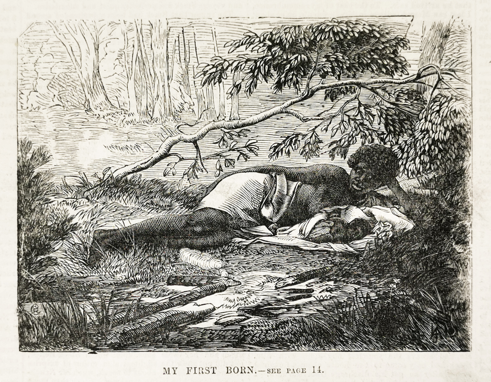 Rare engraving of a young aboriginal woman with her baby. From the original edition of the Illustrated Australian News.
