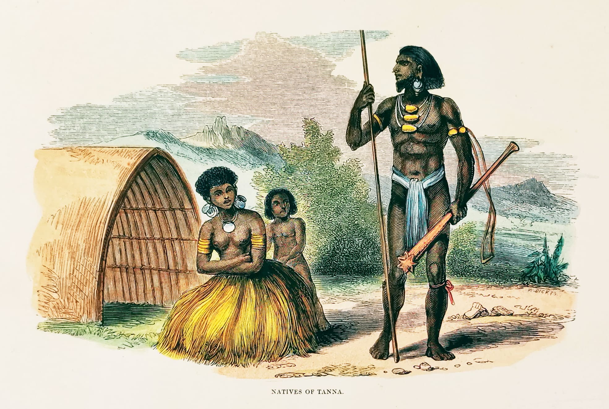 Scarce engraving of natives of Tanna an island in Vanuatu.