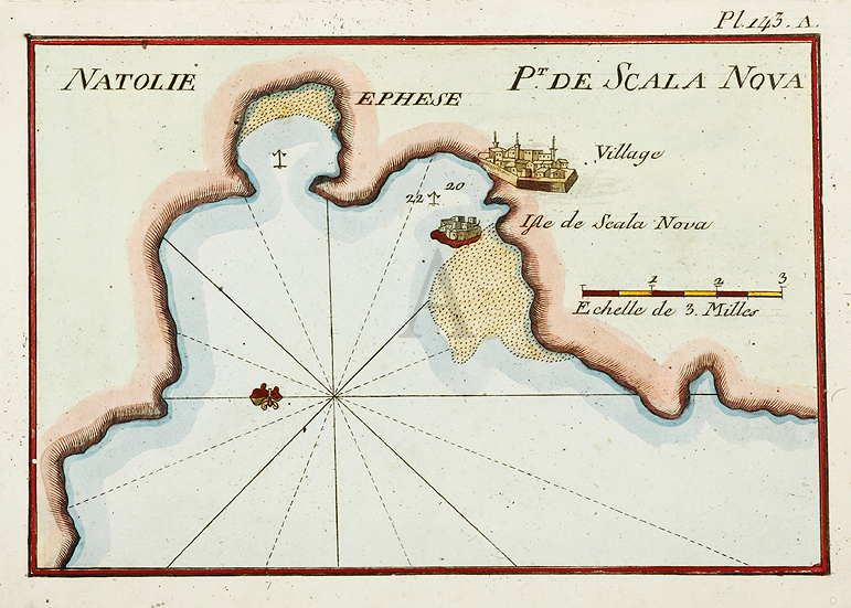 Small C18th map of the ancient Greek city of Ephesus in ancient Anatolia near present-day Selcuk. From Roux’s, Receuil Des Principaux Plans des Ports, et Rades de la Mer Mediterranee, Estraits, de ma Carte de Douze Feiiilles.