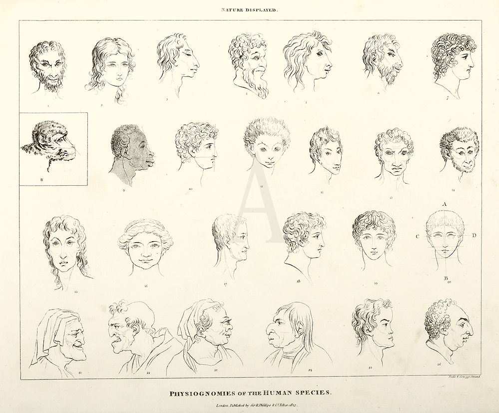 Nature Displayed. Physiognomies of the Human Species. - Antique Print from 1823