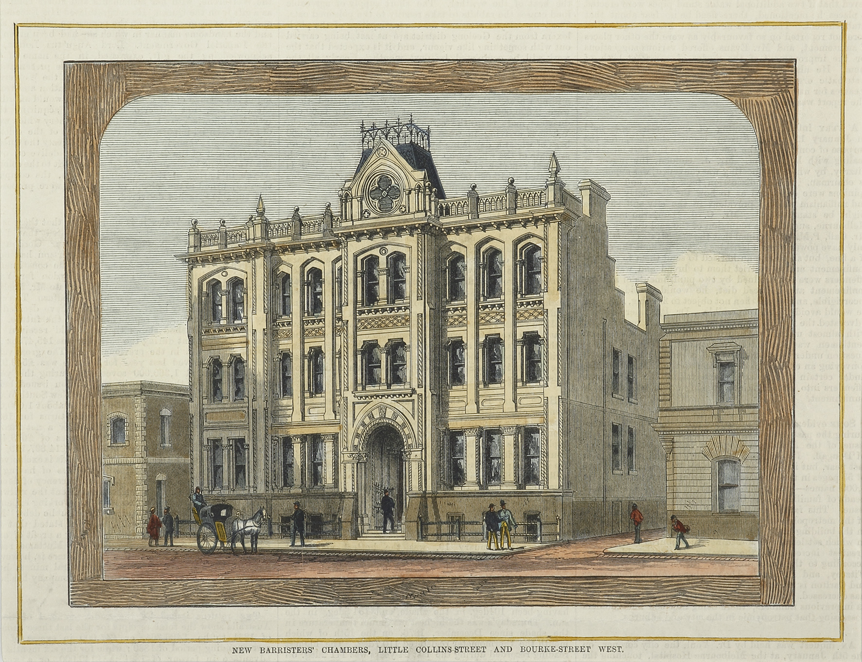 The building was designed by the architect Albert Purchas (1825-1909). Rare engraving from the original edition of the Australasian Sketcher.