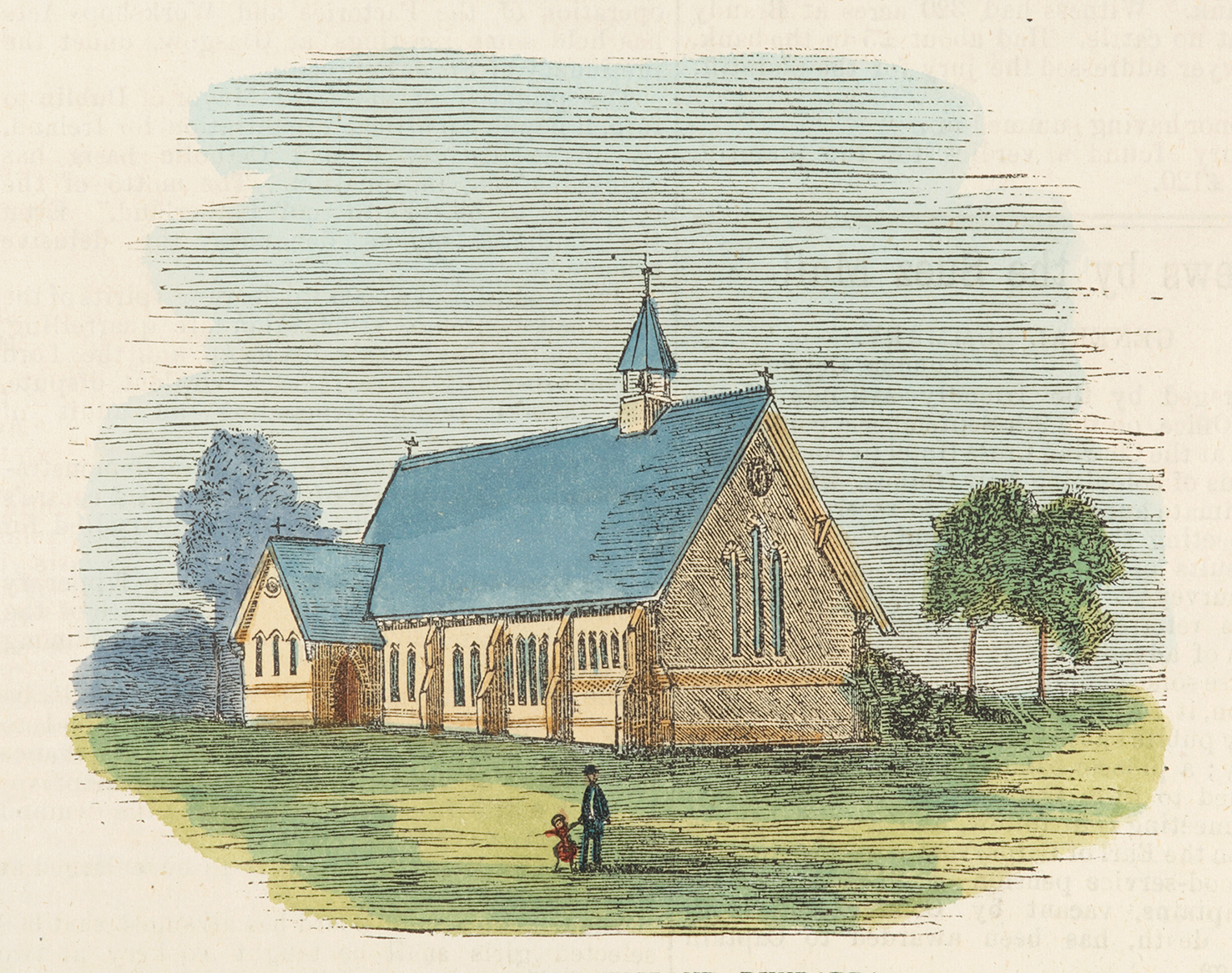 Very rare engraved view of the building of the Church of England, Bundarra, New England Table lands.