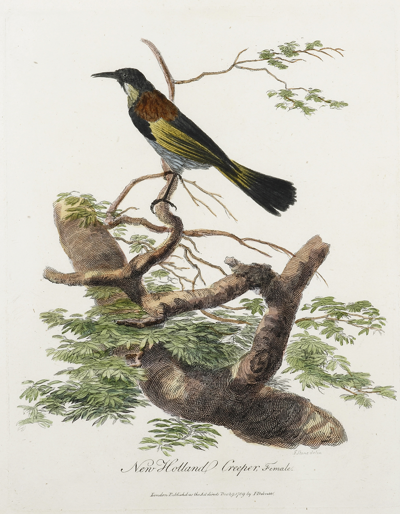 Rare c.18th engraving of the New Holland Honeyeater, from the foundation study of Australian fauna, by Surgeon John White.