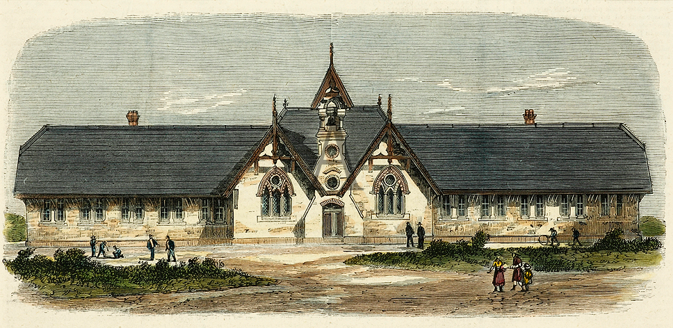 Scarce colonial engraving of Brighton Primary School which opened on April 1, 1875 with 625 pupils and 12 teachers.