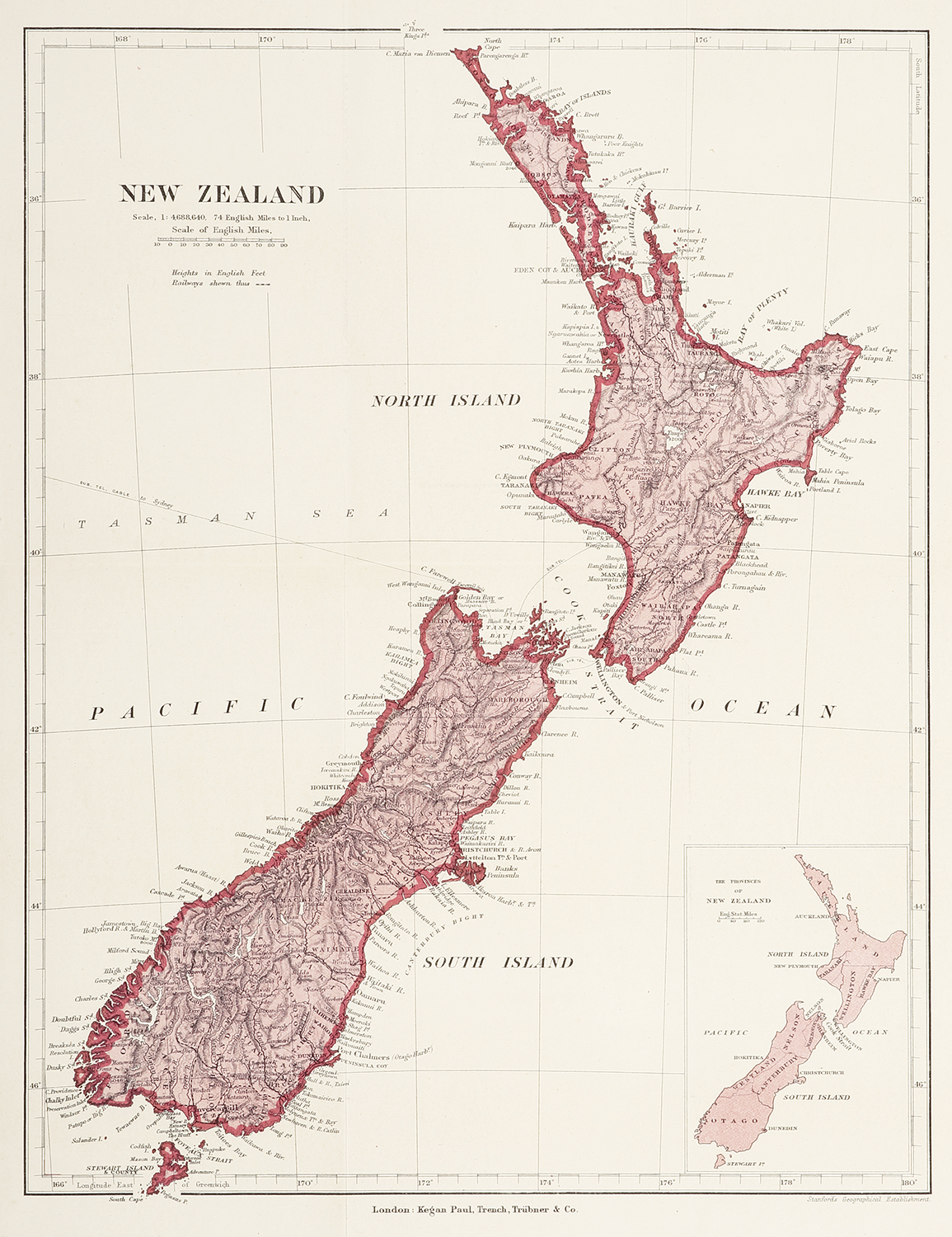 Very detailed map of New Zealand made at the time of Australia’s Federation with excellent inland information.