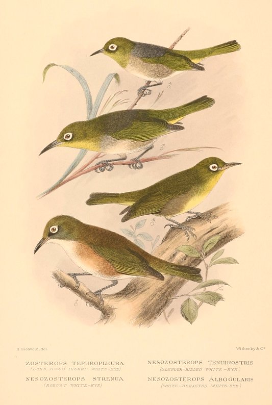 1.Distribution: Lord Howe Island. 2.3.4.Distribution: Norfolk Island First described by 1. Vigors & Horsefield TLS 1827. 2.Gould Synops Birds Austr. 1837. 3. Gould PZS 1855. 4. Mathews Nov. Zool 1912.