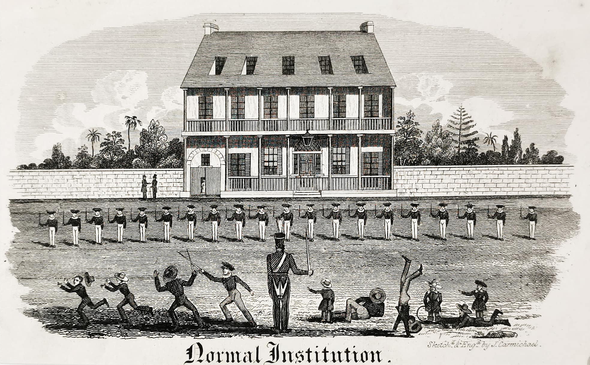 Very rare early etching of Carmichael’s Normal Institution.