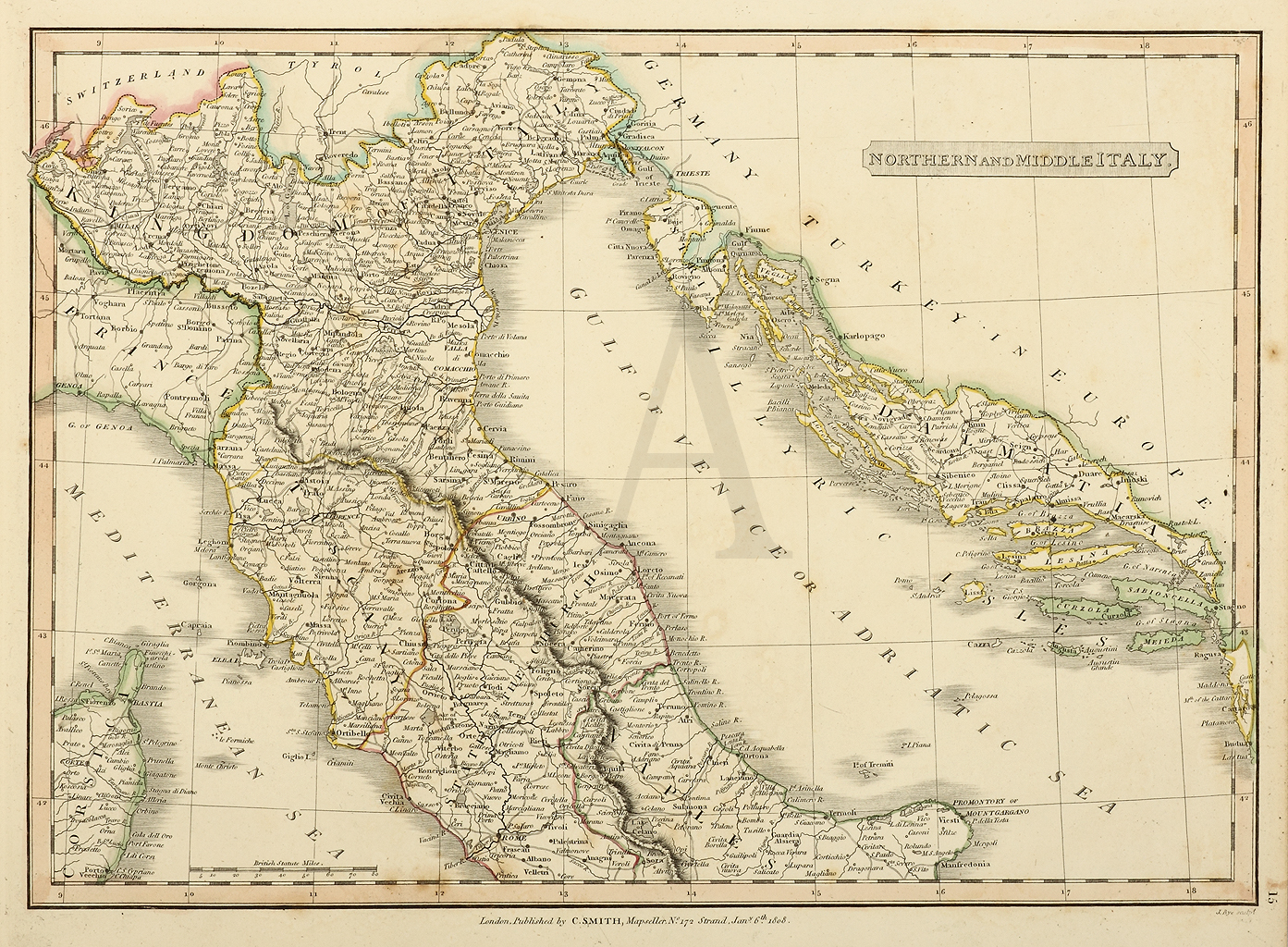 Charles Smith was a London based map seller who at the time of publishing his, ‘Smith’s New General Atlas Containing Distinct Maps of all Principal Empires Kingdoms, & States Throughout the World Carefully Delineated from the best Authorities extant’, was ‘Mapseller extraordinary to His Royal Highness the Prince of Wales’. This map if from this atlas which has a publication date on the title page of 1809 where the engraved maps have dates of 1808. Printed on thick Whatman paper.