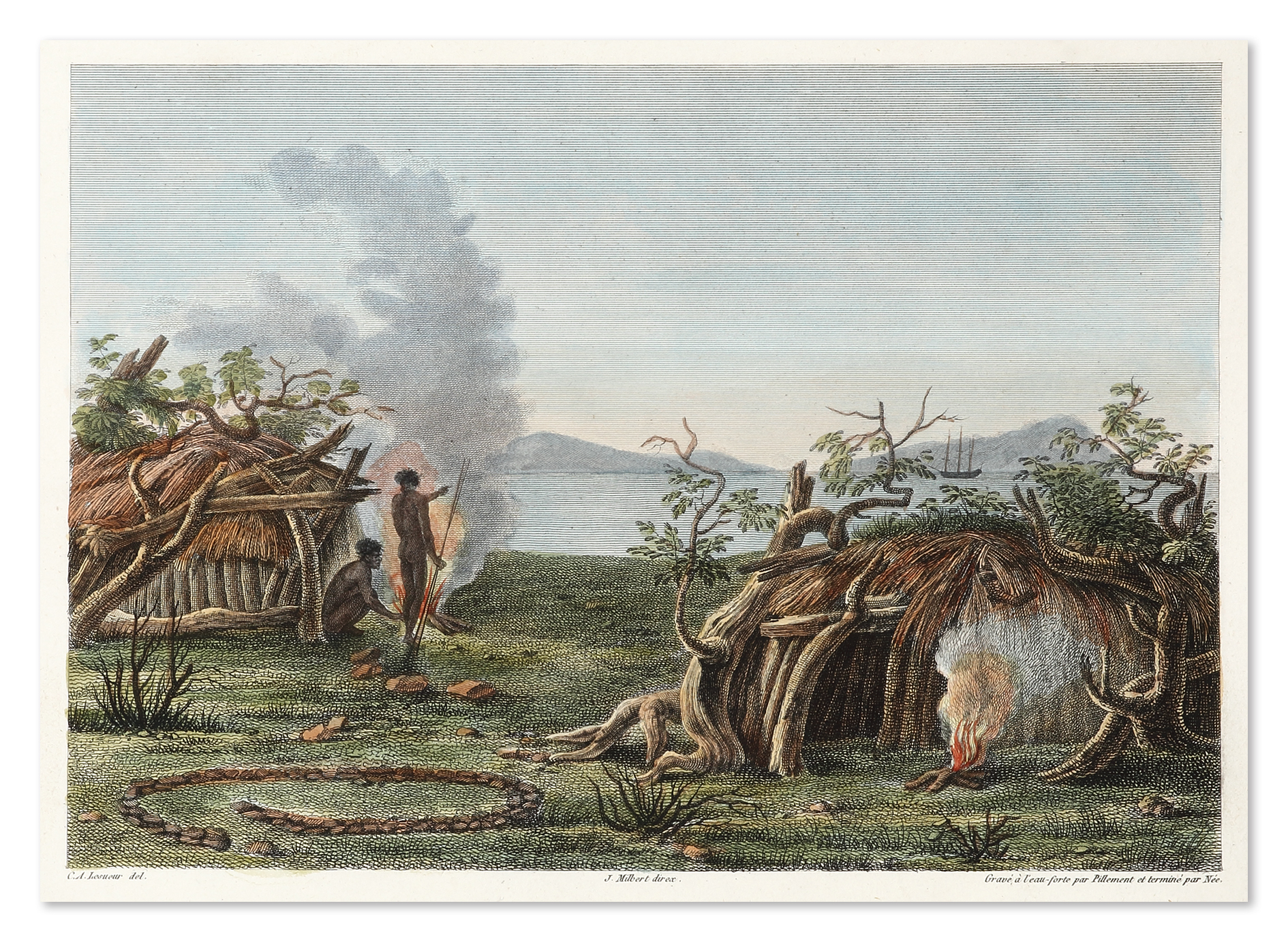 Scarce c.19th engraving of native huts on Bernier Island, Western Australia by Charles Alexander Lessueur (177801846).