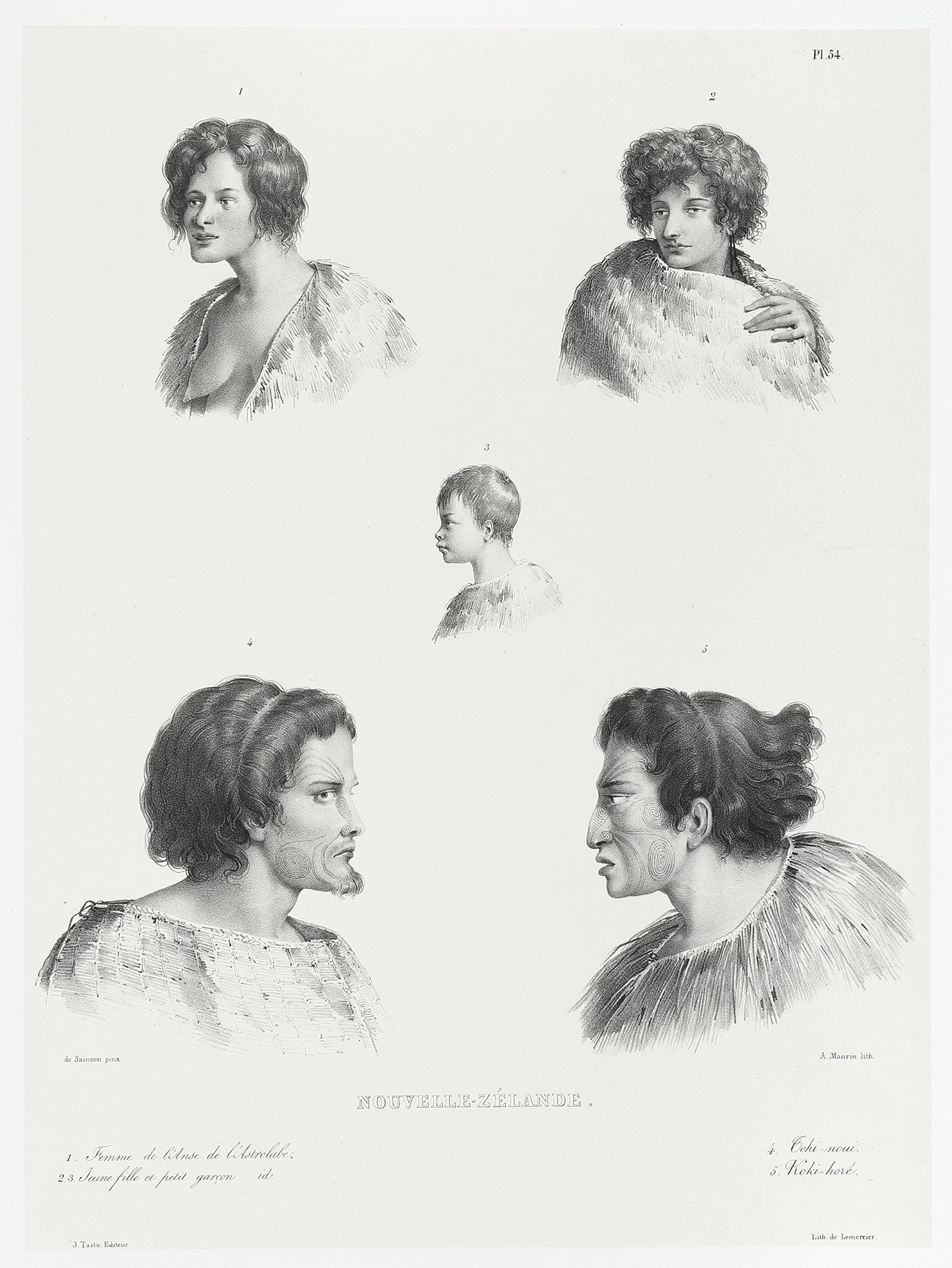 Scarce c.19th lithograph of Maori from a drawing by the artist onboard the voyage of exploration under the command of Dumont D’Urville.