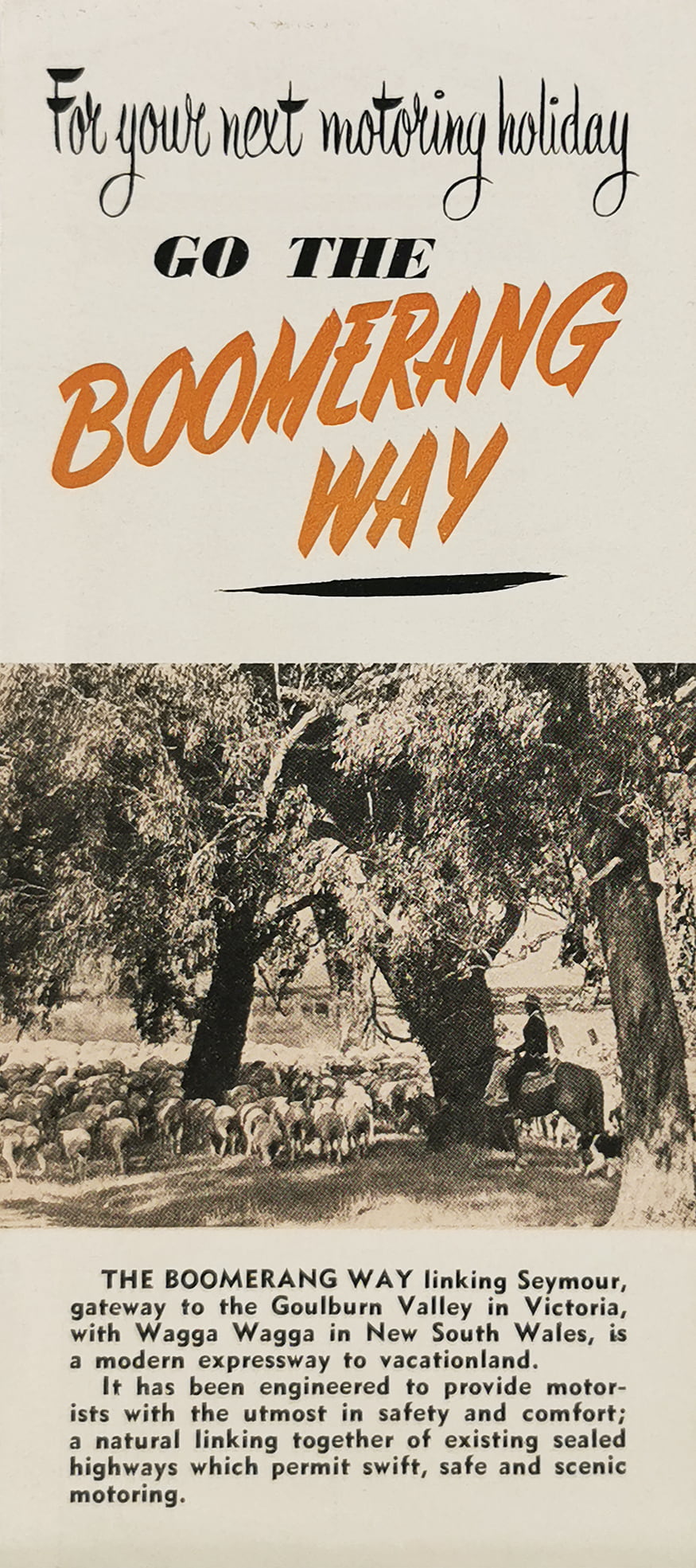C.1960’s tourist brochure for’ the Boomerang Way, the area from Seymour to Wagga Wagga, New South Wales.