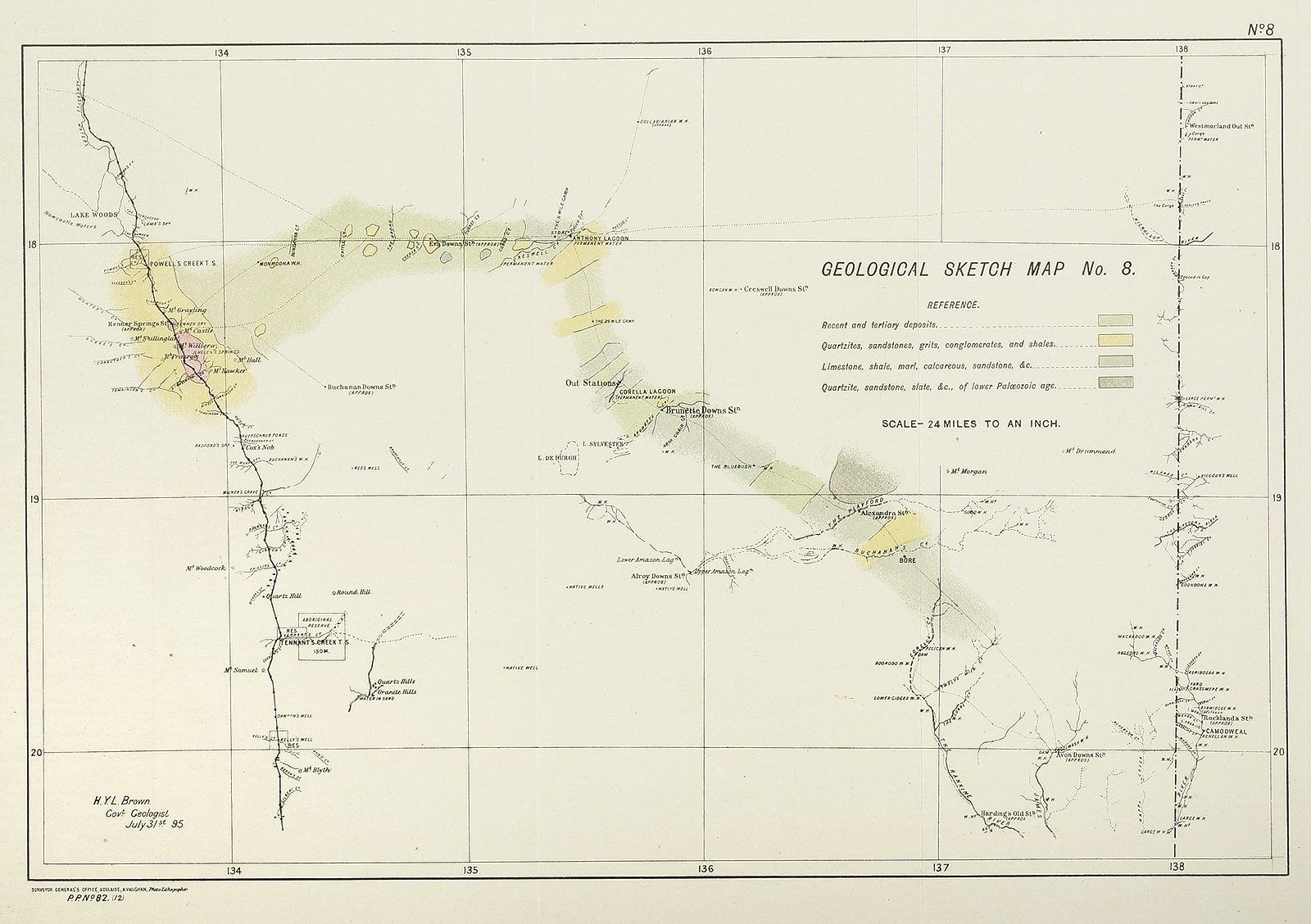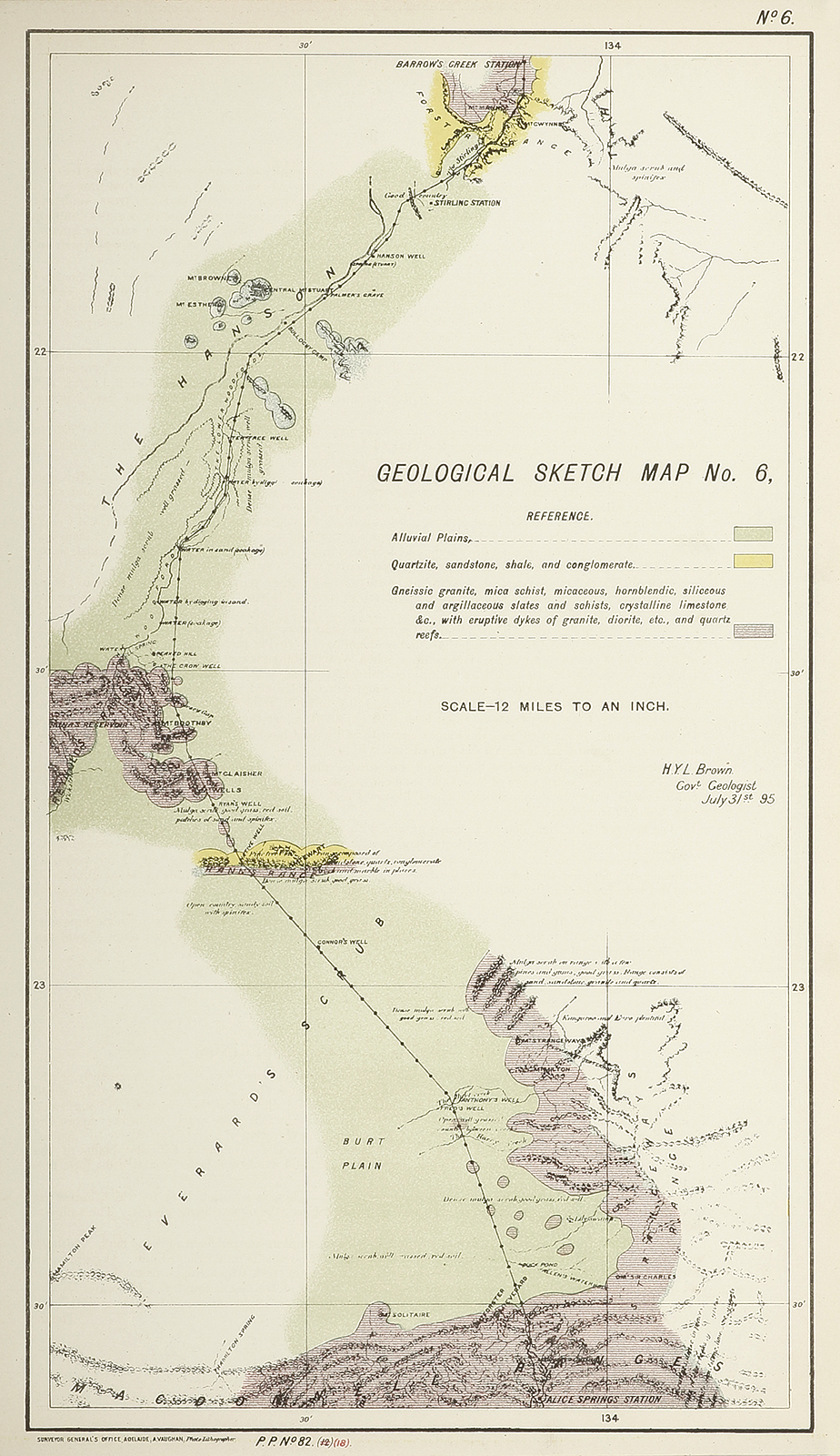 Brown was a Canadian born geologist and educated at King's College, Windsor, Nova Scotia. He then studied under T. H. Huxley and John Tyndall at the Royal School of Mines, London, in 1863-64. In 1865-69 he worked on the Geological Survey of Victoria, under A. R. C. Selwyn. Brown was government geologist in Western Australia in 1870-72. He discovered the Weld Range, drilled the first artesian bore near Perth, and forecast accurately that the colony's mineral resources would eventually become a main source of its advance. In 1872 he worked in private mining in Victoria and New Zealand and two years later rejoined Selwyn in Canada. Finding the climate too severe, he returned to Australia to work for the New South Wales government in 1881-82. In December 1882 Brown was appointed government geologist of South Australia. He made the first recorded observations of much of the hot, arid interior, often travelling alone but for an 'Afghan' camel-driver or Aboriginal guide, under harsh conditions. In 1883 he journeyed to the far north-eastern corner of the colony and in 1885 to Silverton and from Port Augusta to Eucla and back. He went to the Musgrave Ranges in 1889, and through the Lake Eyre region in 1892. His longest journey was made through the Northern Territory from north to south in 1894. He explored the MacDonnell Ranges in 1888, 1890 and 1896 and the country to the north of the Nullarbor Plain in 1897, and in 1905 journeyed to Charlotte Waters and to the north-west of the Northern Territory. In 1907 he went from Van Diemen Gulf to the McArthur River. On Brown's last major trip in 1909 he assessed the Tanami goldfield. His written reports of these explorations were minimal; mostly he recorded the results on maps. He had achieved a major objective with the production of a geological map of the whole colony in 1899. At this time Brown was described by the Critic as 'noted for his Bohemian habits and dry humour'. In 1887 and 1890 Brown had published records of the mines of South Australia to draw attention to mineral resources and to the unsystematic way in which they were worked. He criticised the license laws as unfair to genuine prospectors and called for a school of mines. He always worded his reports on sensational 'discoveries' carefully so that 'rarely was it possible to … exaggerate a good impression into a glowing opinion'. In controversy he was restrained and polite. In 1911 Brown resigned, took six months leave and married a New Zealander, Hannah M. Thompson. He continued to act as an honorary consultant to the Department of Mines in Adelaide until his death. This lithe 'little brown man with a hammer in his hand' had stimulated gold-mining and the copper industry in the State, charted the limits of artesian water in central Australia and discovered natural outlets for the disposal of flood waters in the south-east. At his death in Adelaide on 22 January 1928 it was said that 'he knew every mineral belt from Darwin to Mt. Gambier'.