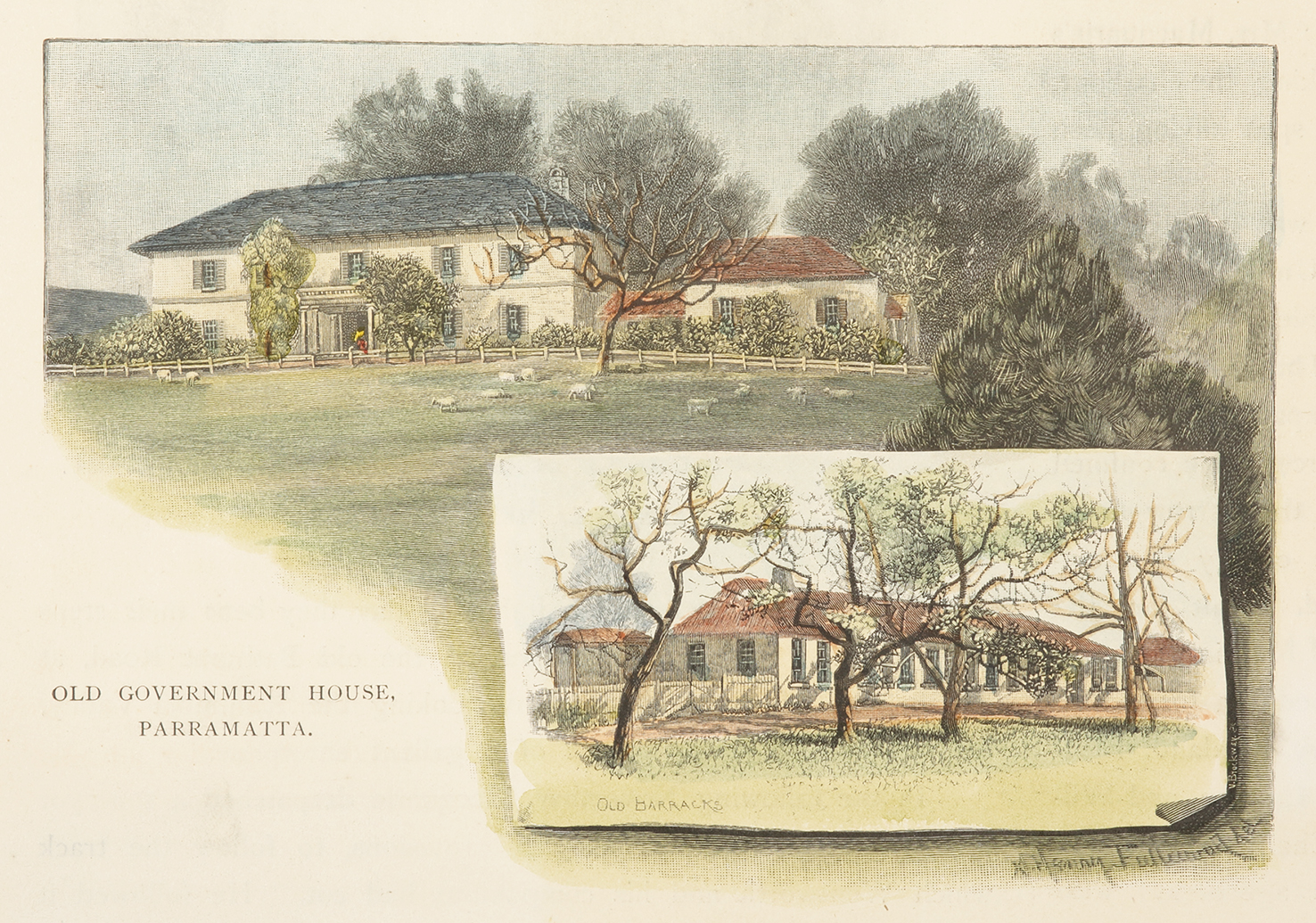 Colonial engraved view of Old Government House, Parramatta. References: Ferguson, J. A. Bibliography of Australia Volumes 1-8, Canberra 1976 : 9829g. Hughes-d’Aeth, T. Paper Nation : The Story of the Picturesque Atlas of Australia. Melbourne 2001 :. Collections: National Library … Read Full Description