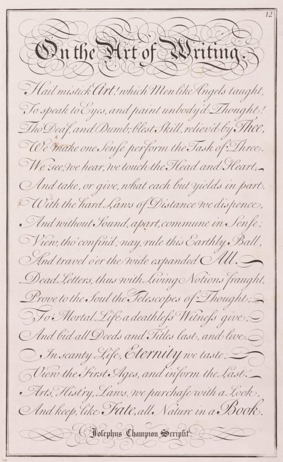 On the Art of Writing. - Antique Print from 1741