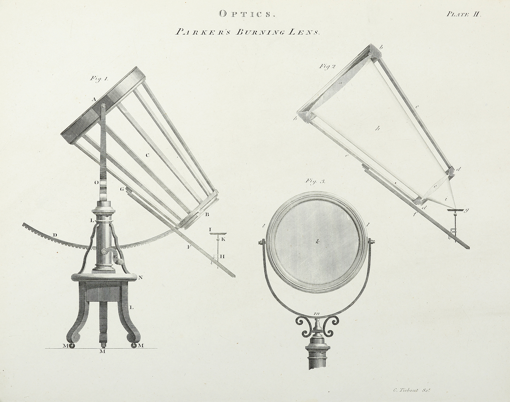 Optics. Parker's Burning Lens. - Antique Print from 1807