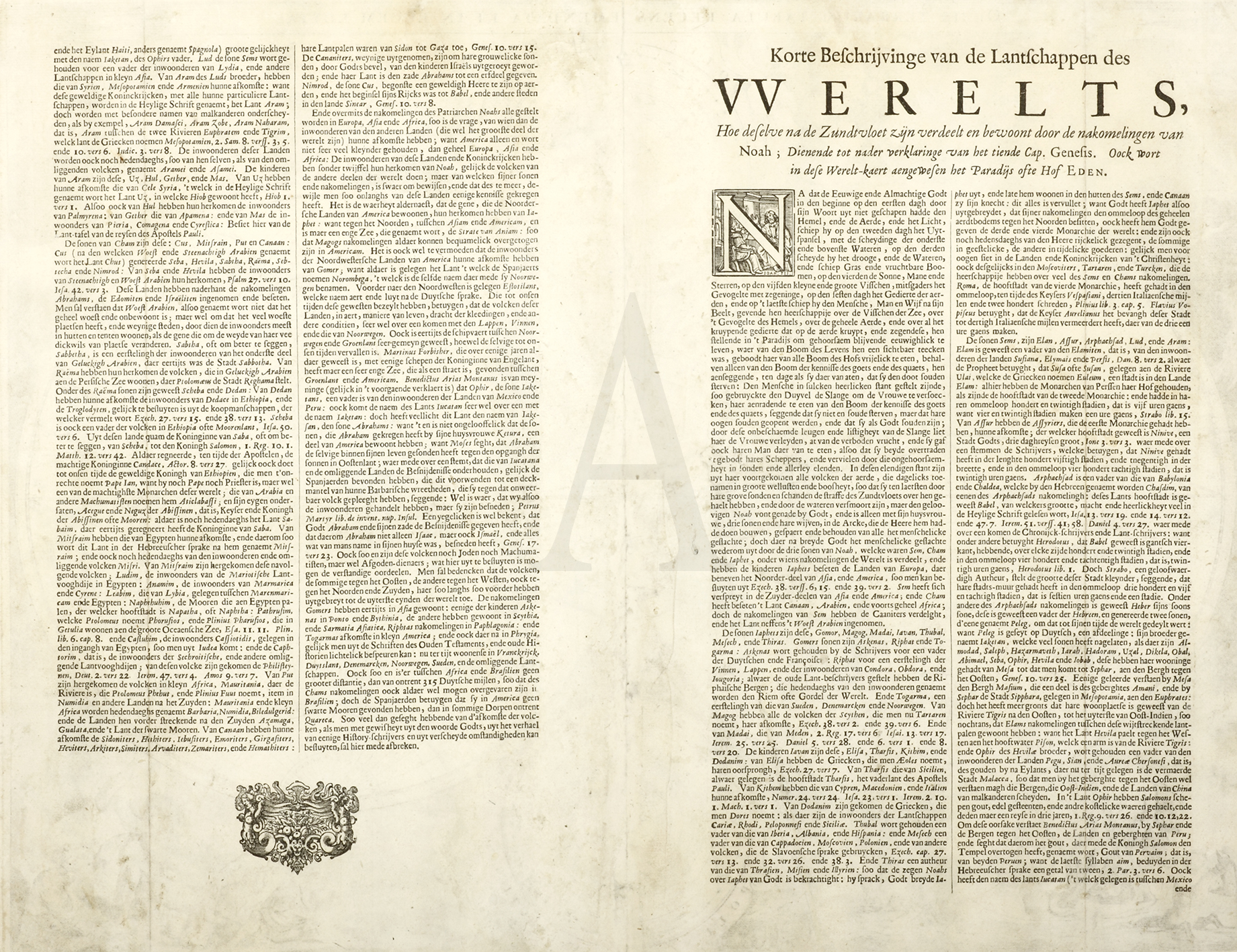 Published by the Keur family who produced a number of different bibles from their press at Dordrecht and later from Rotterdam. Their folio bible of 1682 contains this finely-executed world map.