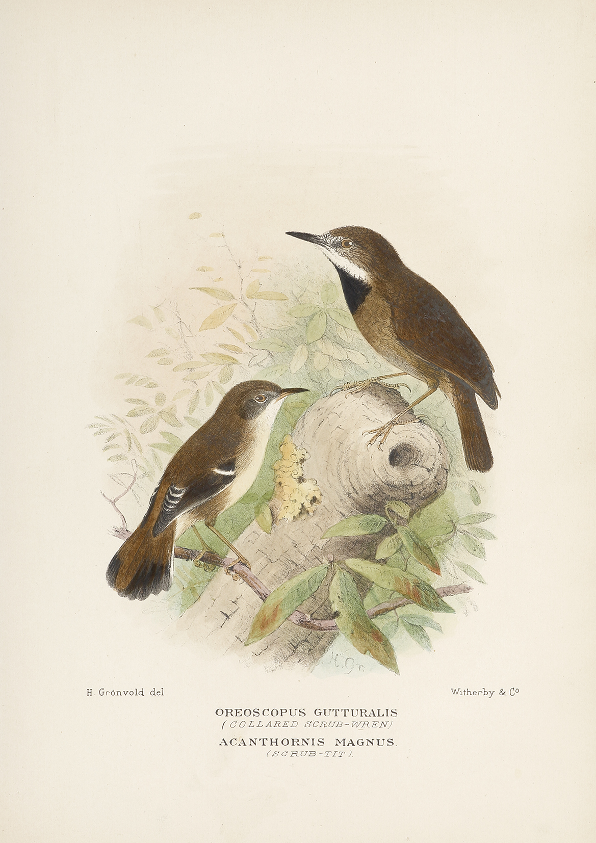 Gronvold was a Danish born artist who, after studying, entered the military as a draughtsman. On leaving Denmark he obtained work at the British History Museum in London. This image is from the last great bird series, The Birds of Australia by G. Matthews and is rarer than John Gould’s work on Australian birds, with only 225 sets done. It was the last series produced to use hand colouring rather than colour printed lithography for the illustrations.