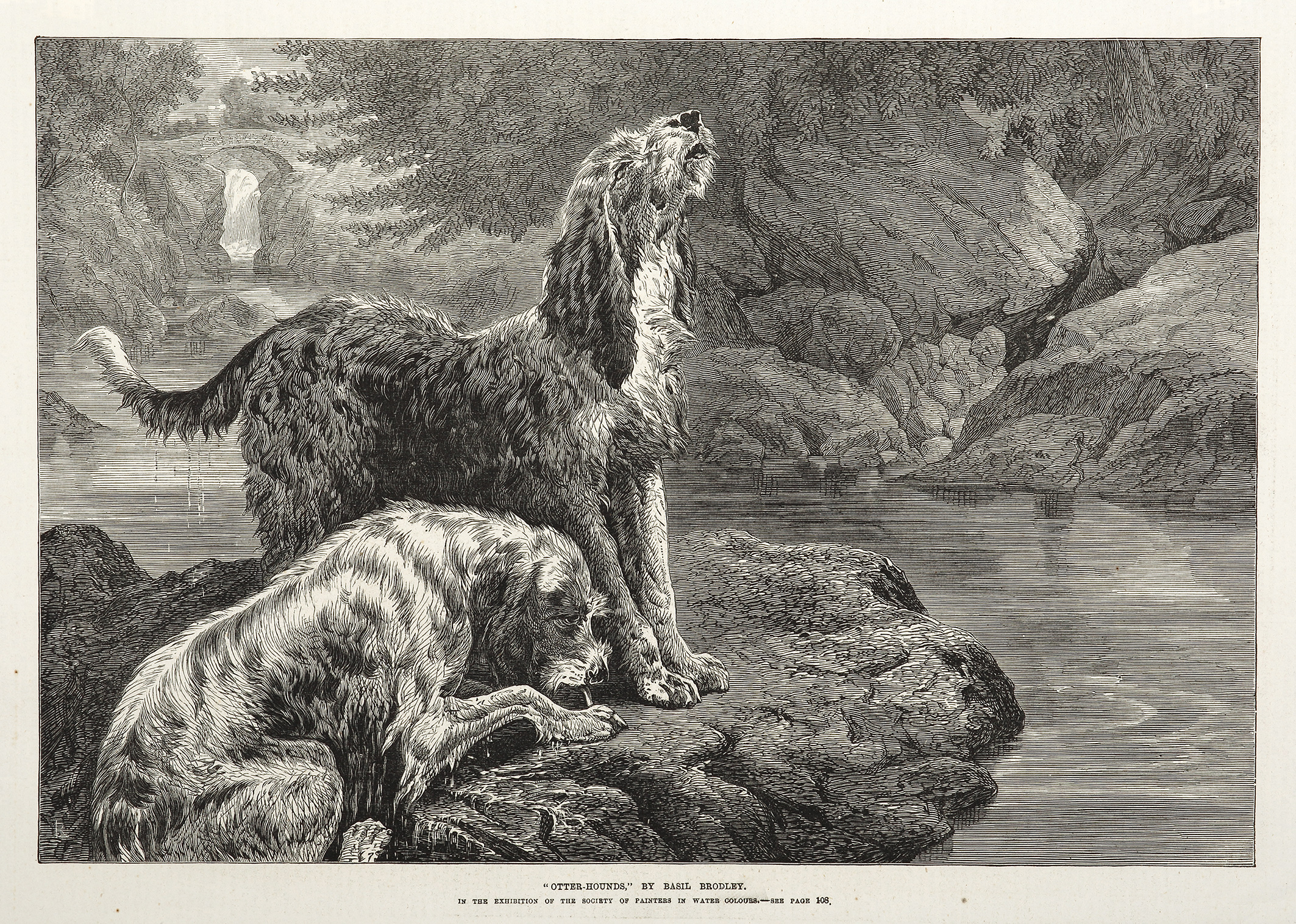 C19th engraving of Otterhounds.